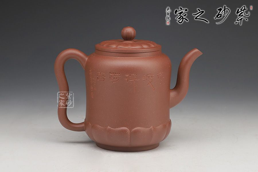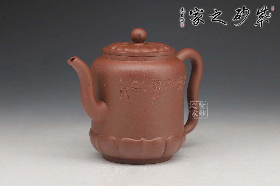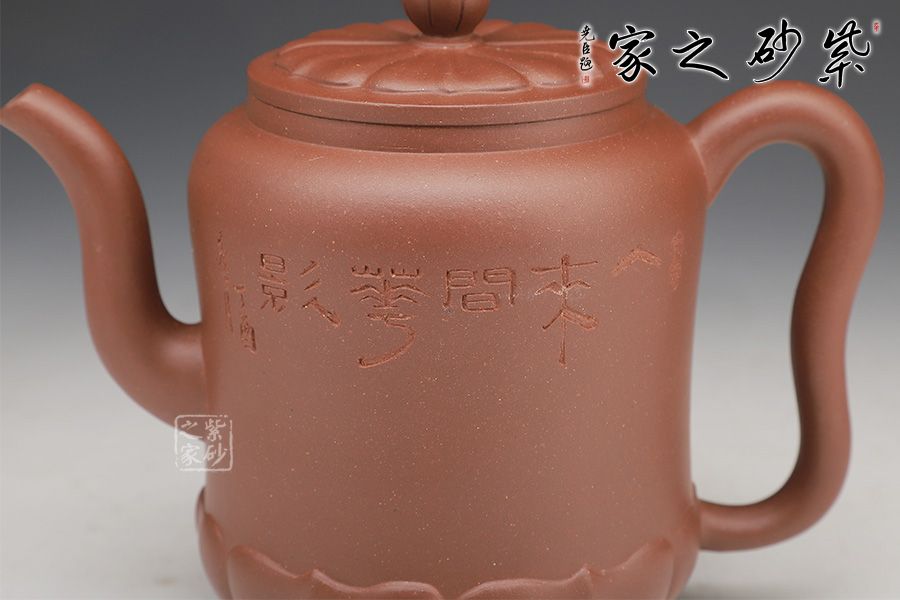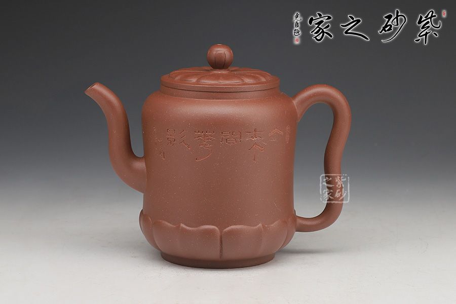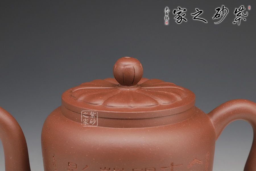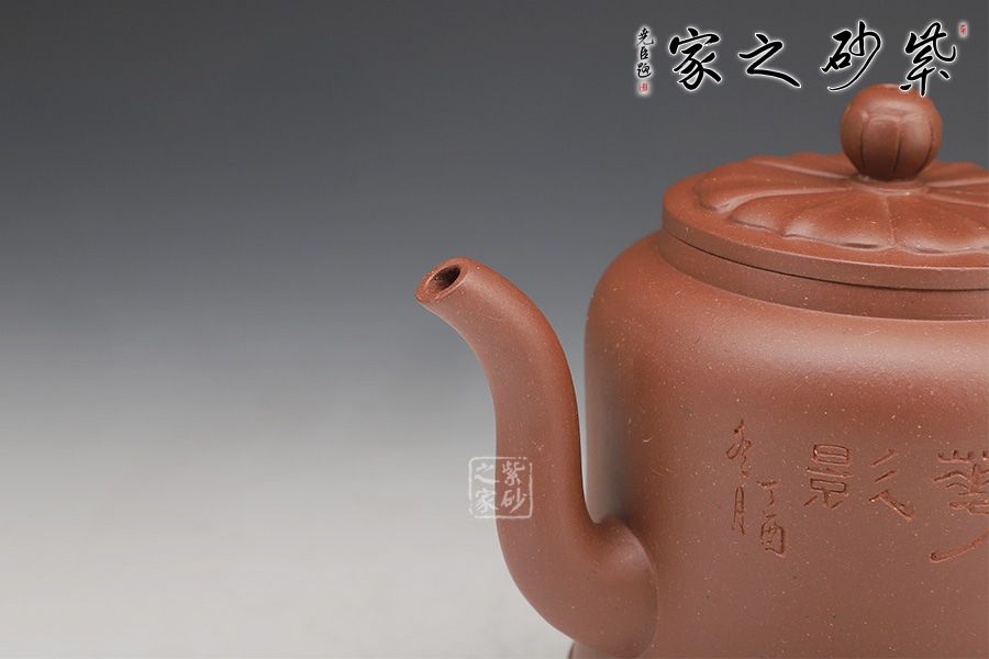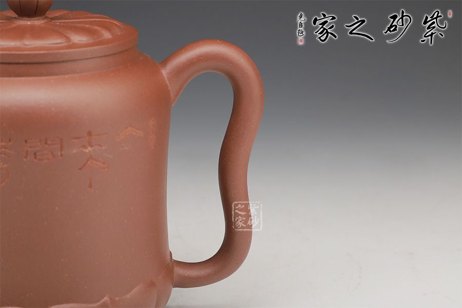 原礦底槽青,由于產(chǎn)于紫砂最底層,質(zhì)地特純,泥質(zhì)細(xì)膩、成色穩(wěn)重。此壺呈圓柱形,壺身圓潤(rùn)飽滿,彎流嘴胥出,出水爽利,整壺以蓮花為形,蓮花花瓣制作細(xì)膩,均勻?qū)ΨQ(chēng),宛若花苞盛開(kāi),線面舒展,芬芳馥郁,精致無(wú)雙,嵌蓋蓋面平實(shí)精準(zhǔn),完美吻合,珠型壺鈕制作精良。