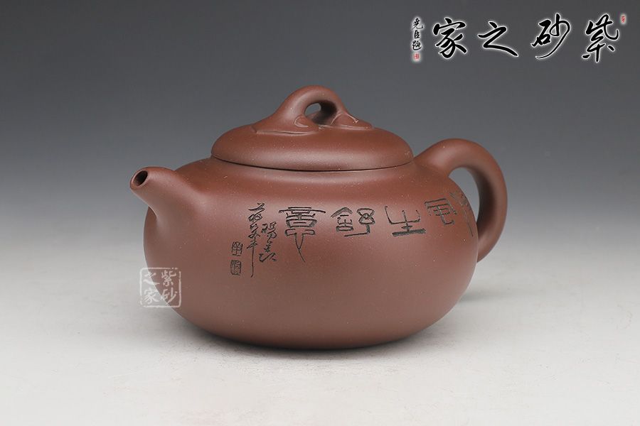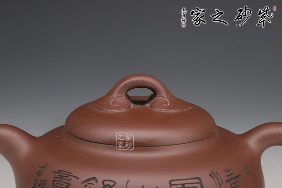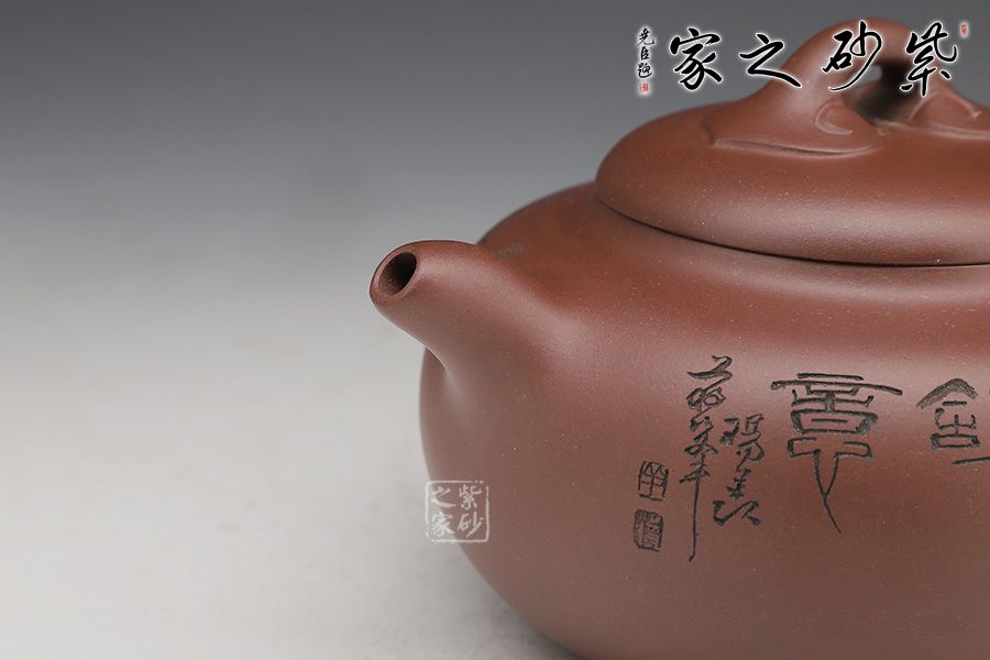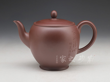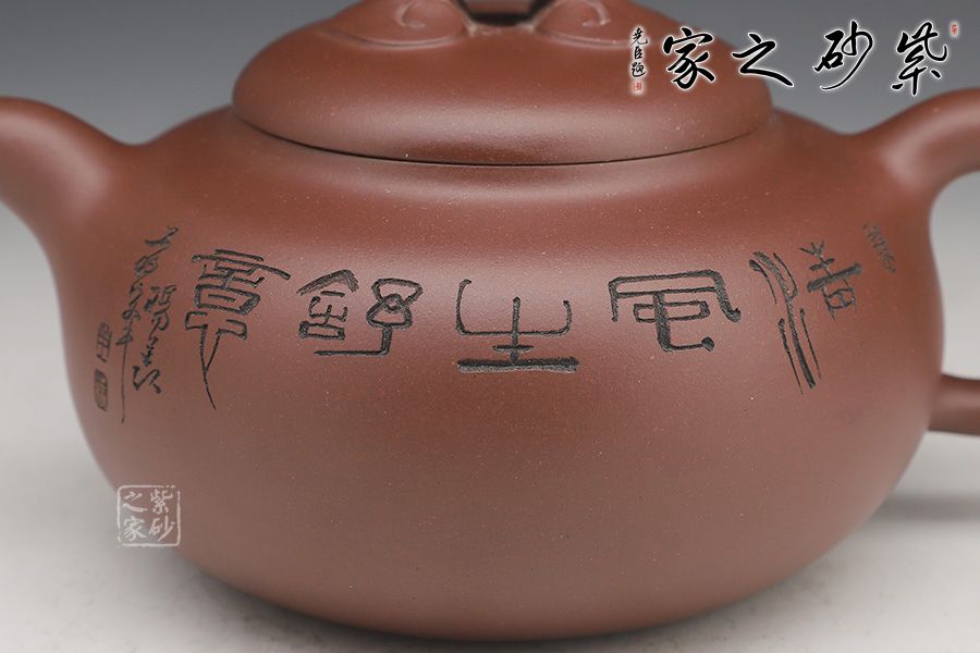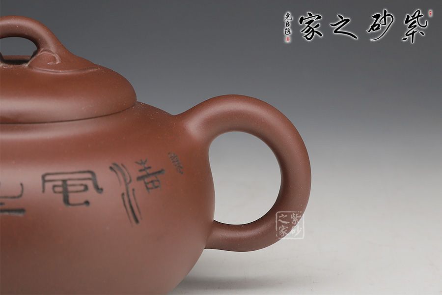 壺身光滑圓潤,上豐下斂,氣質(zhì)沉穩(wěn)而不失靈動。壺蓋微微隆起,與壺口緊密結(jié)合,壺把連接壺肩,與壺身過渡自然,壺把與壺身所形成的虛空間與壺的實體對比強烈,巧妙地勾勒出壺體的輪廓美。