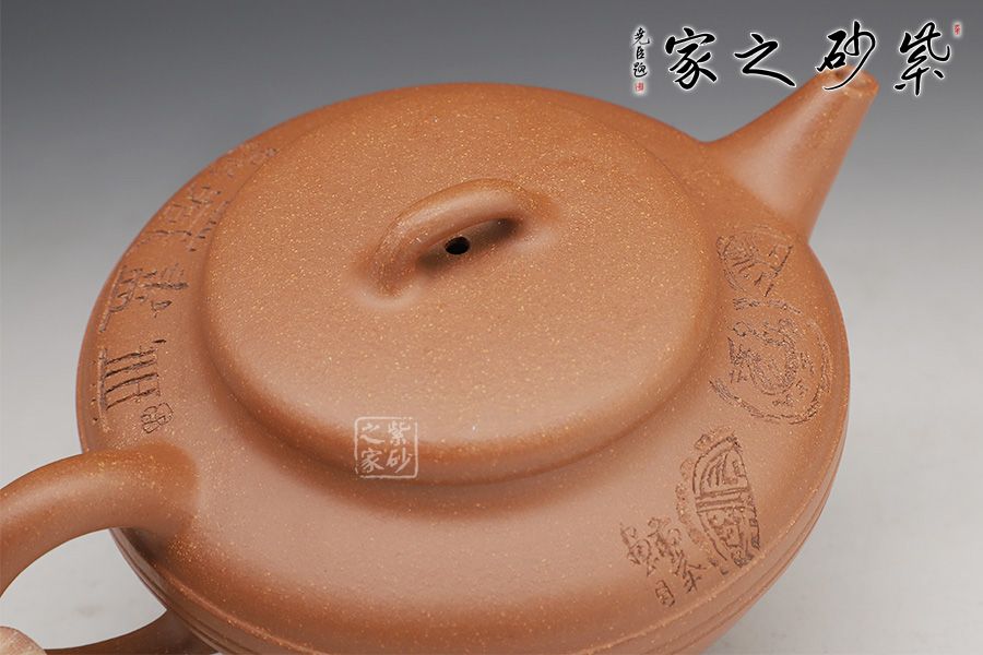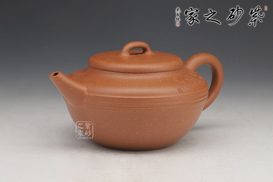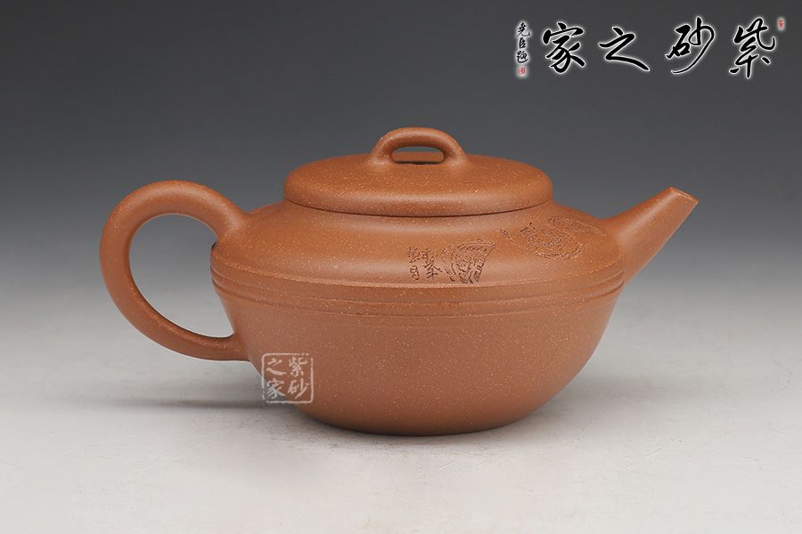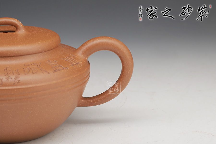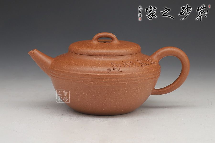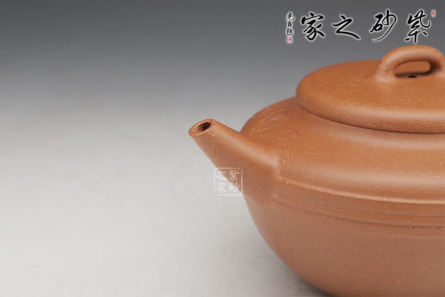 線韻紫砂壺,以流暢簡(jiǎn)練的線條鑄身,充滿韻味。壺身半圓,圓潤(rùn)飽滿,下斂上豐;滑肩,壺口外擴(kuò),圓壓蓋設(shè)計(jì),蓋頂橋形鈕亭亭玉立。一彎嘴出水迅速,方形端把彎曲有致。