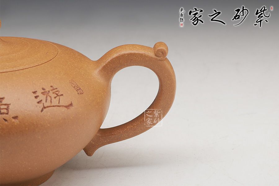 泥性:感甜嫩綿密,質(zhì)堅(jiān)而溫潤,呈近田黃色調(diào),為江蘇宜興趙莊山系朱泥礦~黃石黃之共生礦,經(jīng)挑揀練製而成,因含鐵量只達(dá)6%左右,致陶之后呈“金田黃色”。 紫砂百科全書