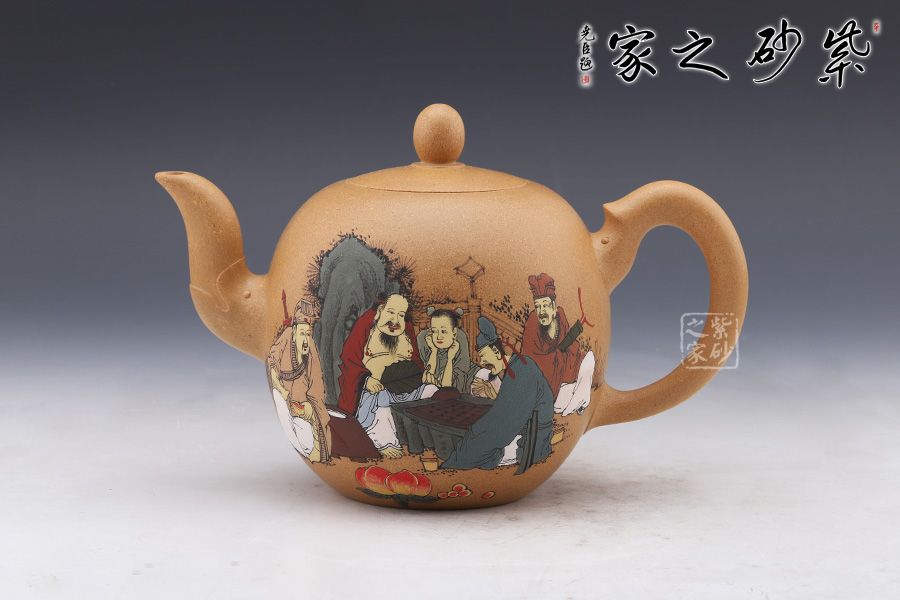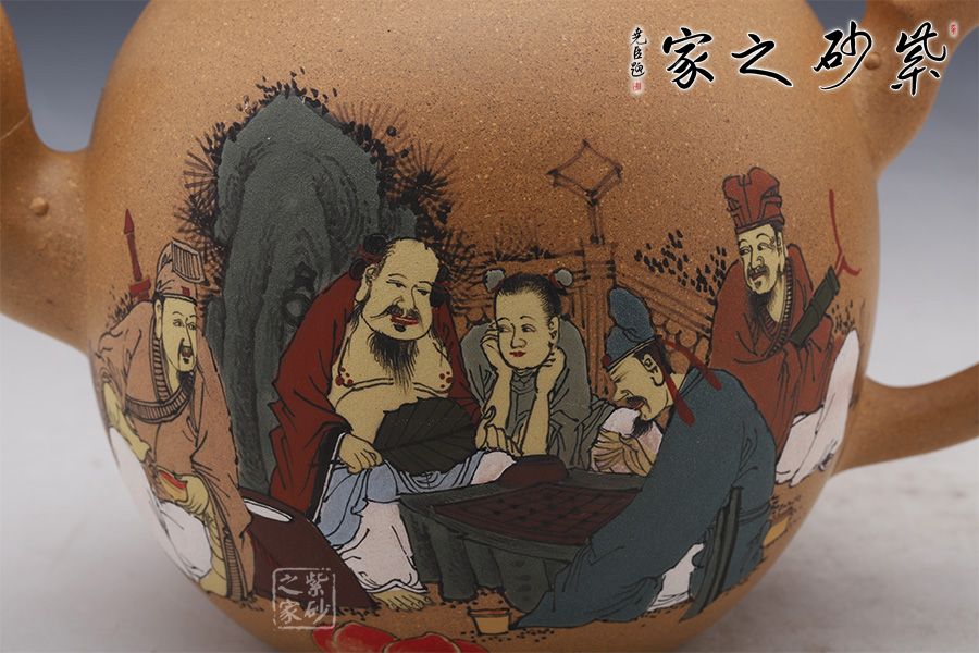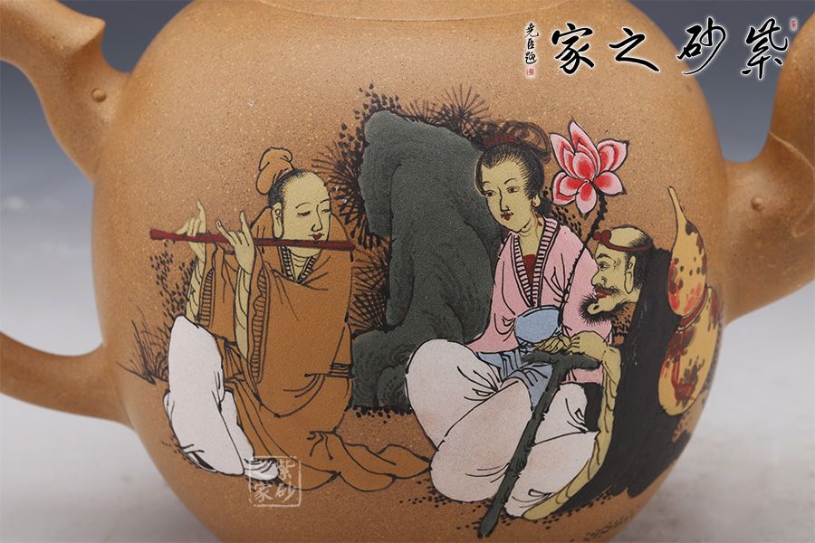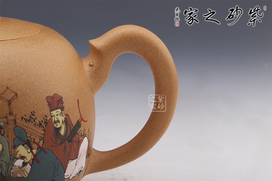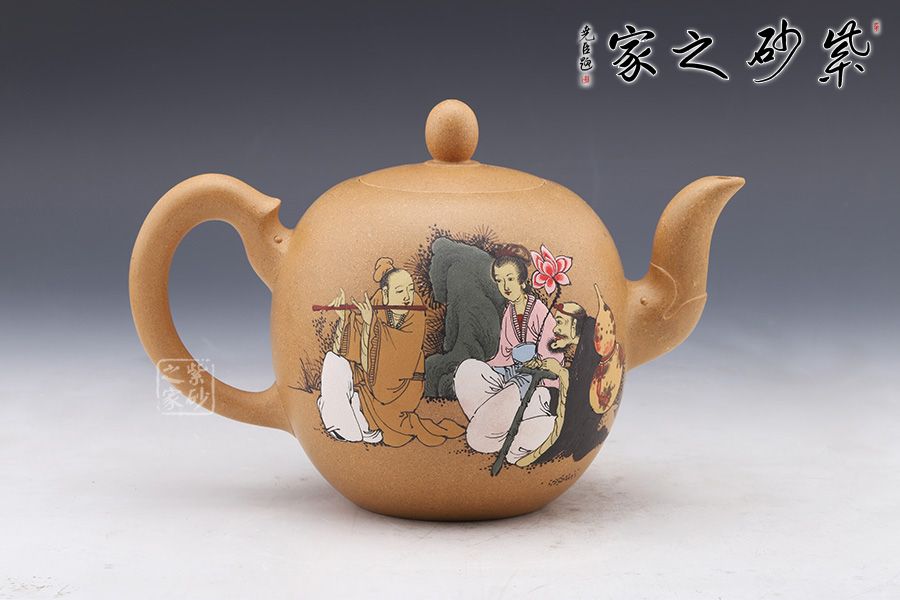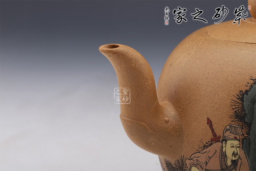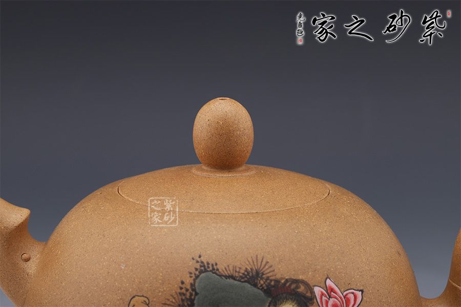 作品做工精致,壺身通體為蛋狀,光滑圓潤,短嘴為直流狀,倒把拿捏方便,扁圓珠紐。此作大品容量,主要用于觀賞收藏之用。