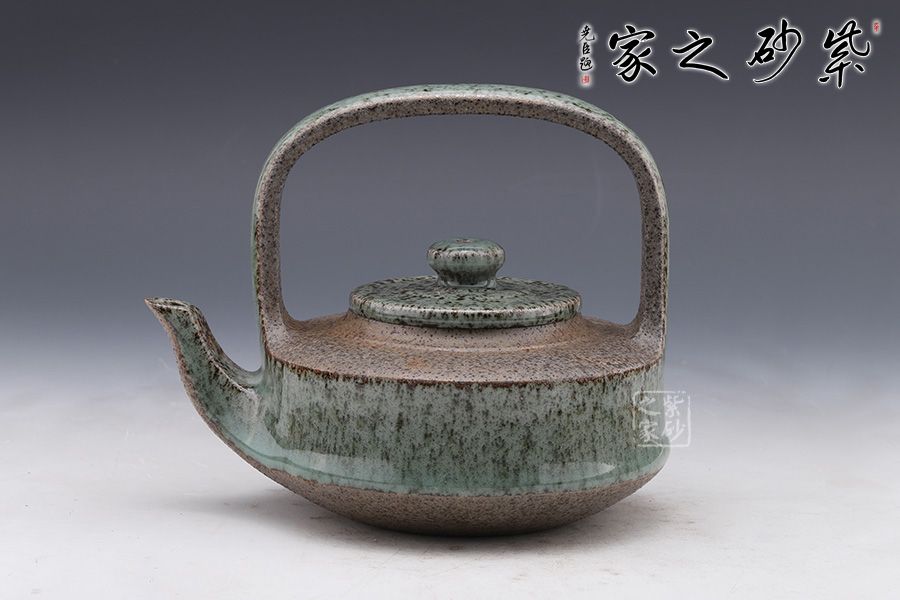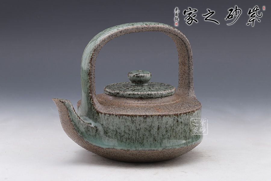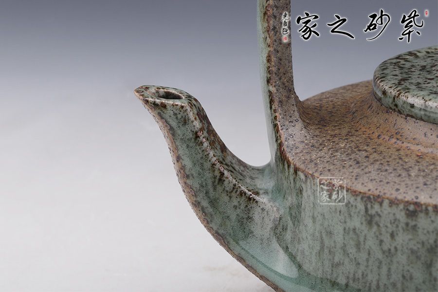 張榮法“青瓷紫砂第一人 ”,獨(dú)創(chuàng)青瓷紫砂工藝,故得此稱號。1300°高溫窯變柴燒,成品一壺一式,件件孤品。