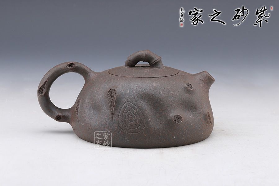 此外,采用古法1300°高溫窯變技藝,壺身色調(diào)泛金屬光澤,黑色鐵質(zhì)清晰可見,極具個(gè)性。