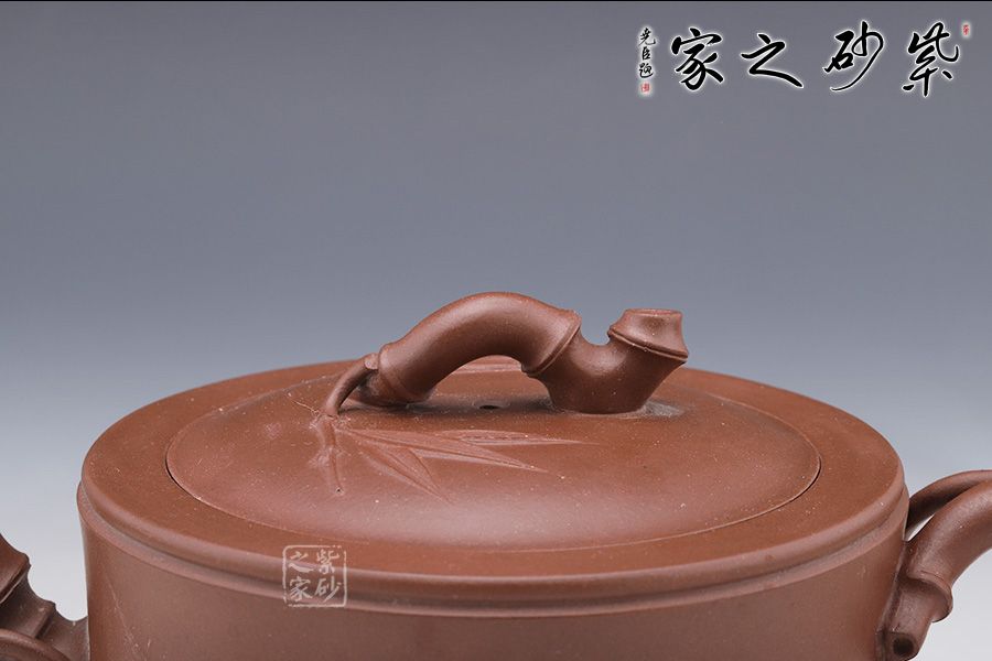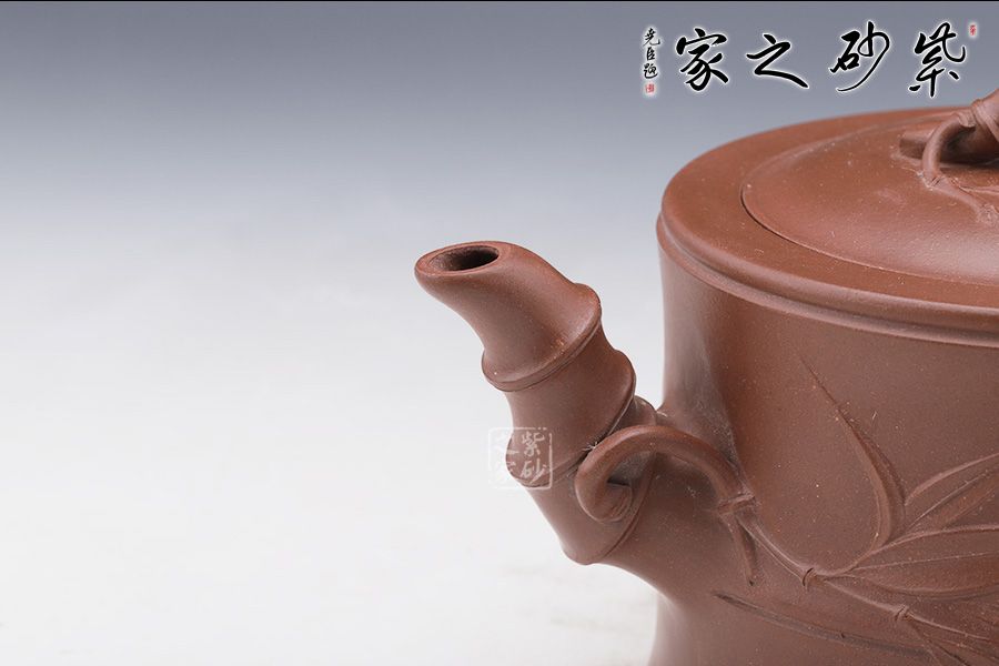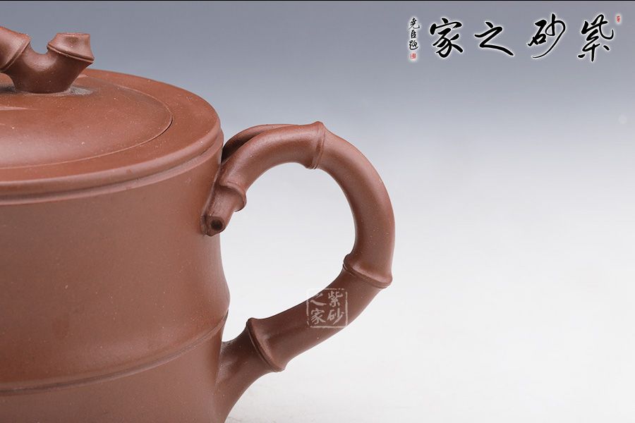 竹段壺是紫砂壺中經(jīng)典的花器壺型,她以竹節(jié)為題材。由于宜興有“竹的海洋”之稱,在宜興南部的山嶺上、丘陵間,乃至農(nóng)宅屋前門后都有成片的竹林,宜興人對(duì)竹不可謂不熟悉,加上竹為“歲寒三友”之一,正可謂“虛心勁節(jié)是吾師; 人生貴有胸中竹”,竹也因此在文風(fēng)盛茂的宜興廣受喜愛。所以,竹元素融入紫砂藝術(shù)就非常自然。