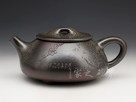 泥性:底槽青由于產(chǎn)于紫砂最底層,質(zhì)地特純,泥質(zhì)細(xì)膩、成色穩(wěn)重,呈棕色,在近代制壺名家廣泛使用。近年黃龍山四號(hào)井,因故塴蹋而封井,礦源日益短缺,殘留堆積風(fēng)化之“底槽青”因而愈顯珍貴;宜興紫砂舉世聞名,本泥功不可沒。