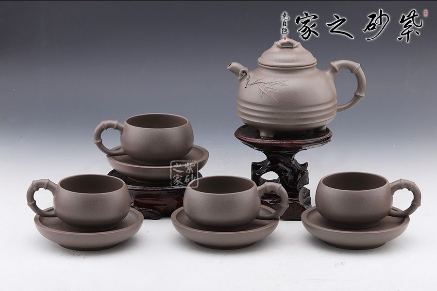 中國(guó)人最愛(ài)竹,以為“天地與我并生,萬(wàn)物與我為一”,自然中的一切之物無(wú)不可為友,一切之物又無(wú)不可與“君子比德”,竹,便被文人墨客冠以頗高的贊許,此作品不張揚(yáng)不狂望,虛心有勁道便是竹子的最佳寫(xiě)照,一壺四杯四碟,極具實(shí)用價(jià)值。