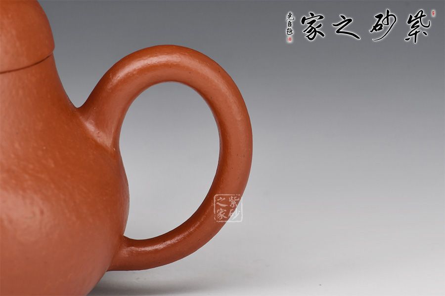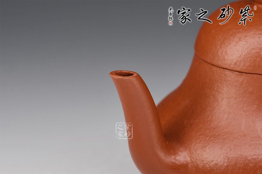 思亭壺為清代陸思亭所創(chuàng)壺式,器形簡潔大方,為后世人紛紛效仿;壺身如葫蘆,細(xì)長的壺嘴自壺腹向上胥出,圈把秀麗,高截蓋與壺口相切,形成一個完整的葫蘆;子母線切合嚴(yán)密,氣密性極好,圓球形壺鈕,干凈利索,整器均勻,的流把明接手法,處理細(xì)致到位。
