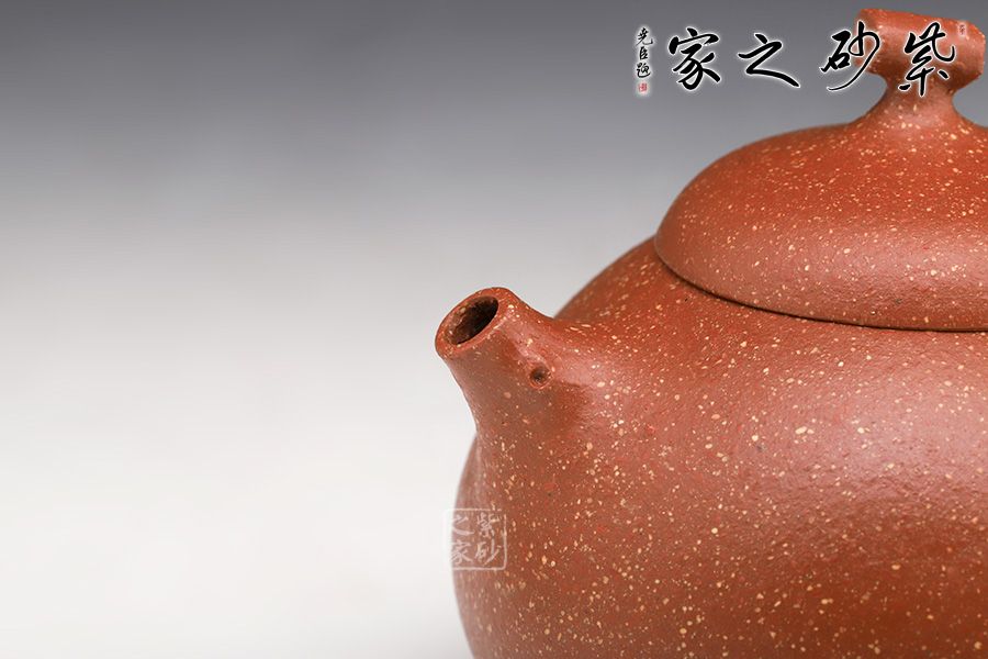 泥性:原礦因含緞泥、紅泥、紫泥等諸多共生礦,陶之后,于深沉之“橙紅色”底上,滿佈五彩斑斕的粗細(xì)、深淺之紅、黃星斑點(diǎn)。