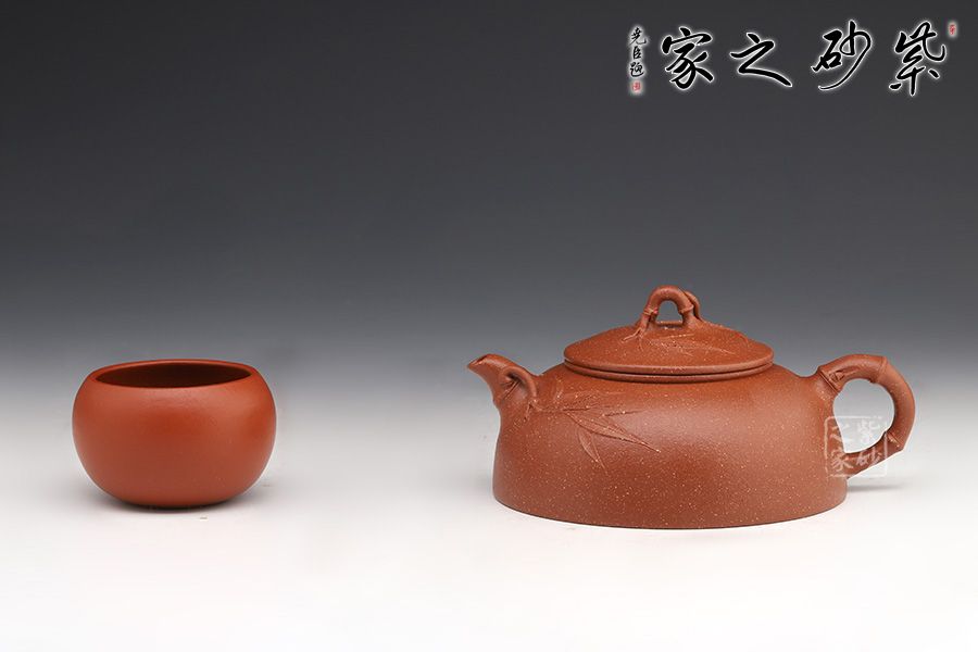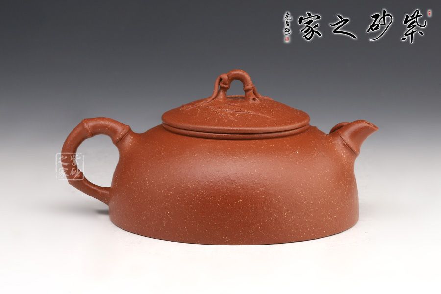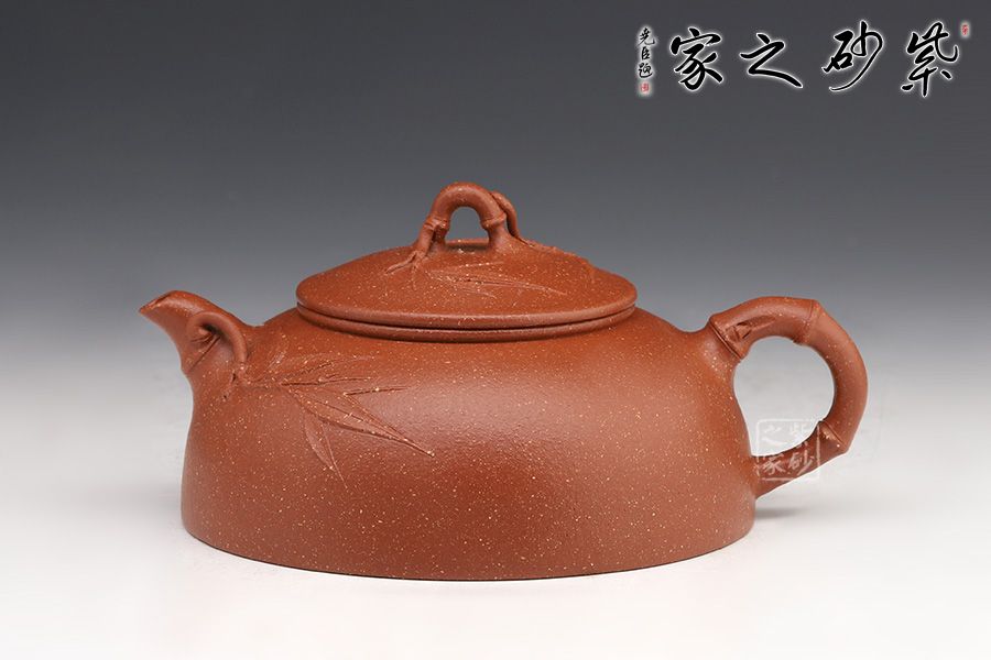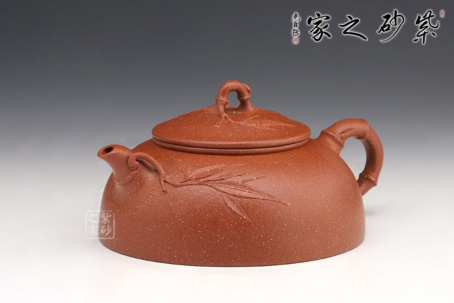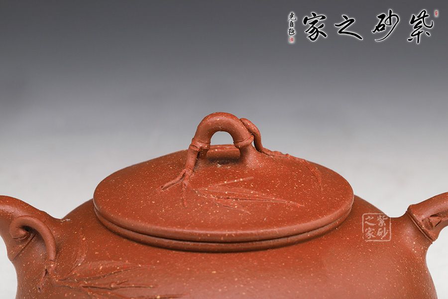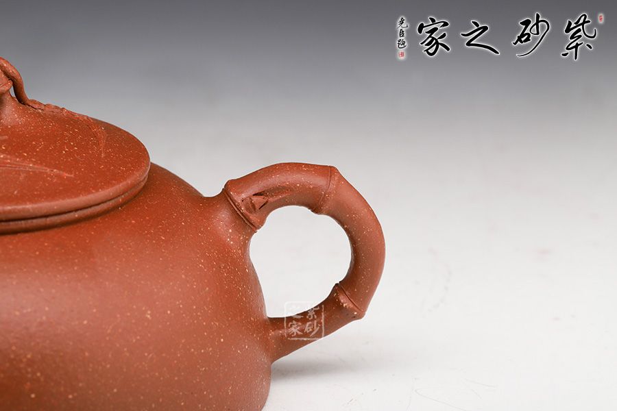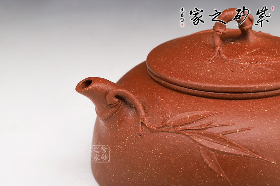 此壺名為月竹,是莊老師在半月器型上加以改良,添加了竹獲的風格。竹,是君子的象征,受眾多文人,壺友的喜歡,所謂“寧可食無肉,不可居無竹”。此壺壺身半圓狀,端莊穩(wěn)重,飽滿圓潤。鈕嘴把采用竹的樣子做成,竹意滿滿,風度翩翩,鈕嘴把分別延伸貼竹,觀賞性十足。
