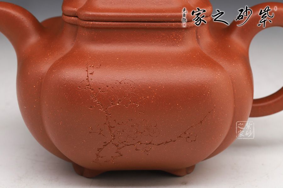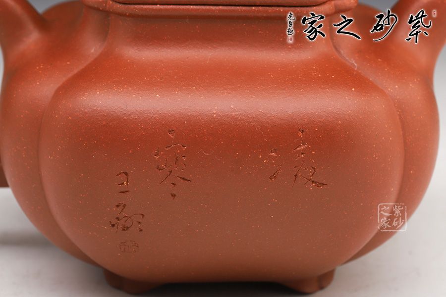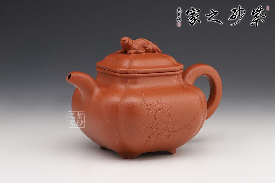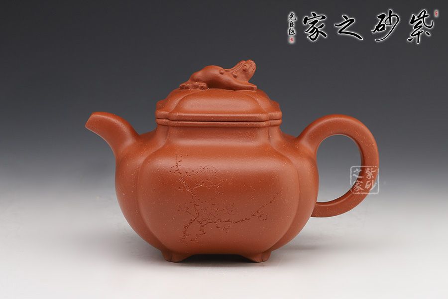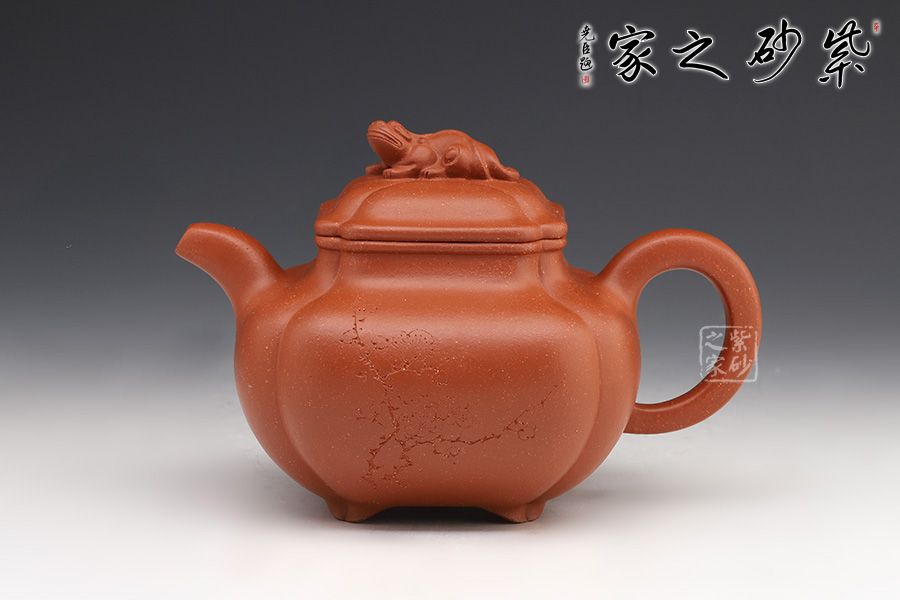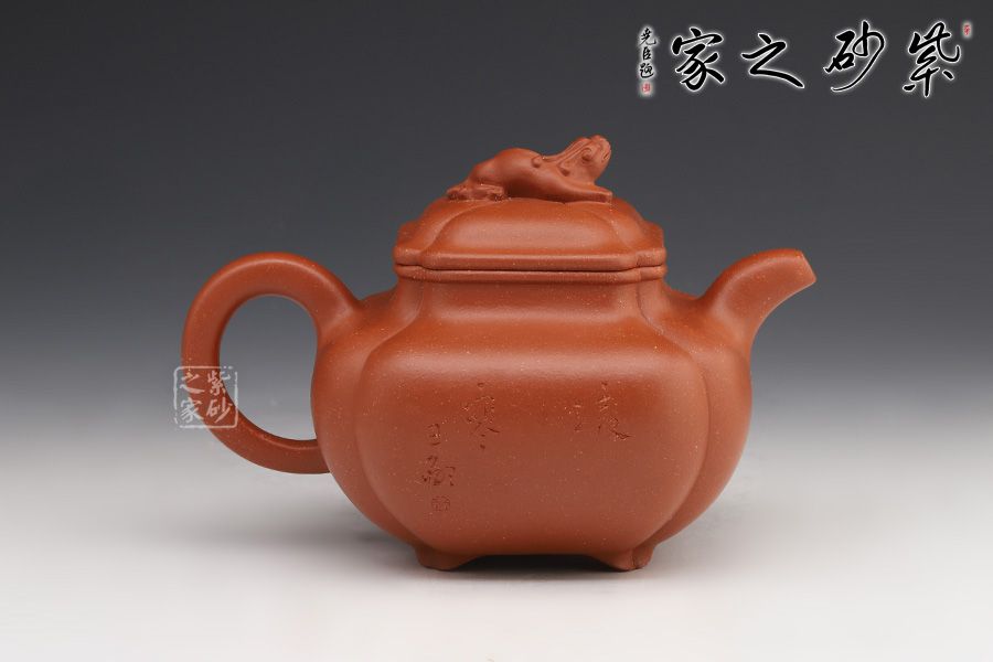 傳爐,經(jīng)典方圓結(jié)合器型,最為考驗(yàn)做壺功底。此壺在傳爐的器型上加以改良,四個(gè)小足做的更加的短小穩(wěn)重,壺身拉長(zhǎng)有韻味,且四邊做了抽角,將方圓結(jié)合凸顯的淋漓盡致。壺鈕是一只抬首望天的蜥蜴,向天問道,配上壺身刻繪“凌寒”二字,有一種一往無前的精神,工料型,寓意俱佳的一把美壺。
