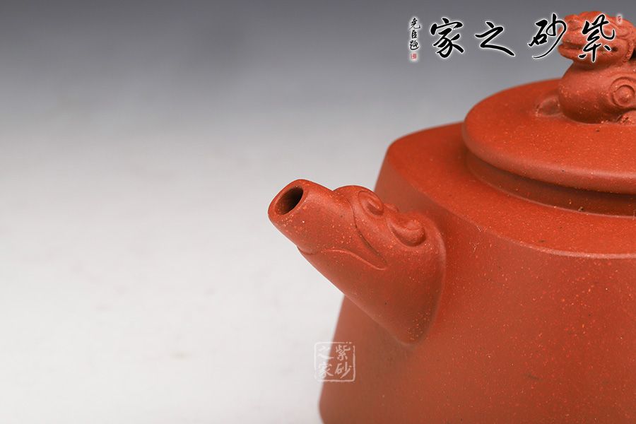 特點:原礦因含緞泥、紅泥、紫泥等諸多共生礦,陶之后,于深沉之“橙紅色”底上,滿佈五彩斑斕的粗細(xì)、深淺之紅、黃星斑點。