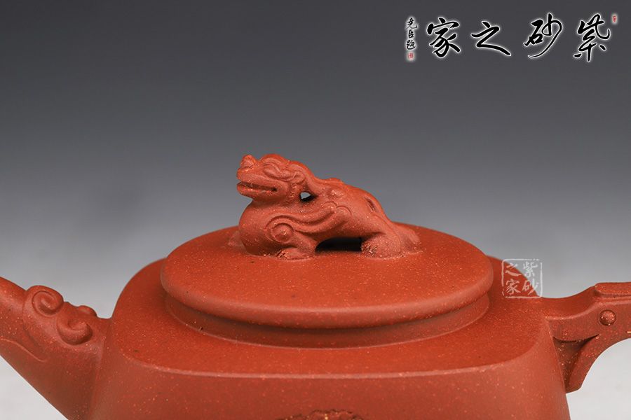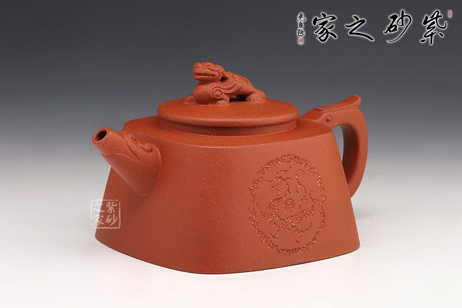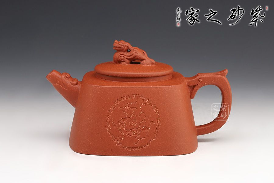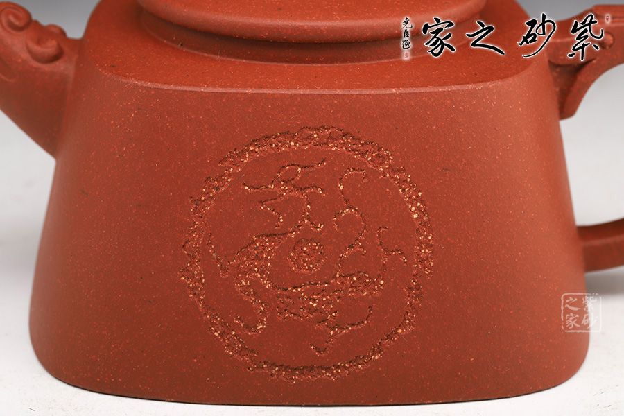 此壺以方器作為壺身,端莊穩(wěn)重,泥片銜接處沒有棱角把玩舒適順手。壺鈕是一只挺拔向上的麒麟,霸氣十足,麒麟也是瑞獸,趨吉辟邪。壺的正面刻了一只龍,威武霸氣,龍是權(quán)利的象征,也是我們中華名族的代表,男人的追求,反面刻繪“盛世”二字,是對我中華的祝福,寓意非常好,理應(yīng)收藏一把抒發(fā)咱們的愛國情懷。