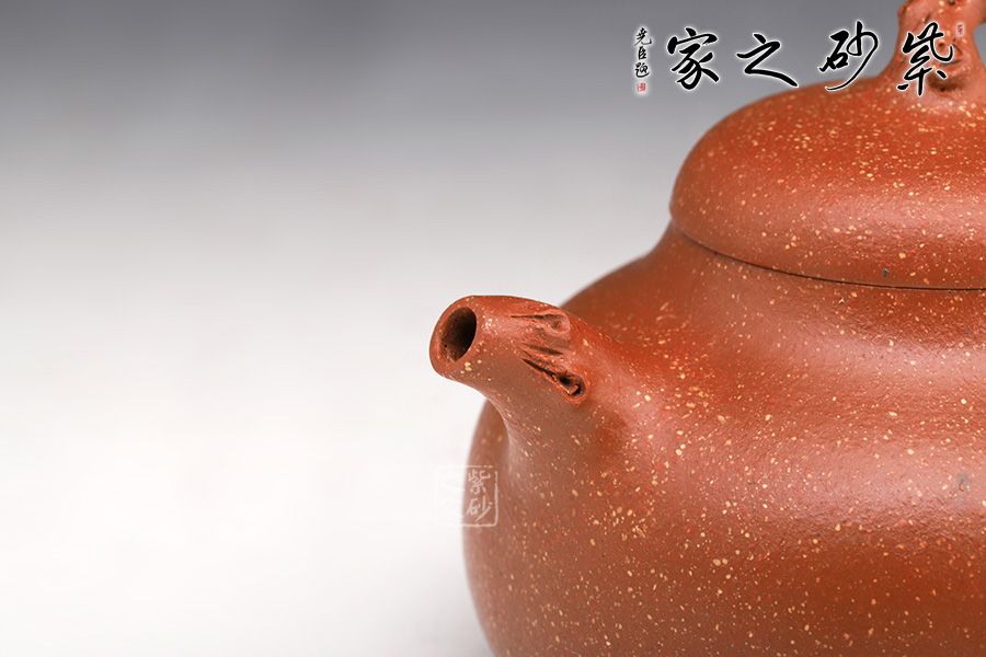 泥性:原礦因含緞泥、紅泥、紫泥等諸多共生礦,陶之后,于深沉之“橙紅色”底上,滿佈五彩斑斕的粗細(xì)、深淺之紅、黃星斑點(diǎn)。