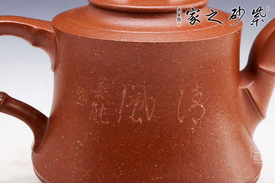 泥性:原礦因含緞泥、紅泥、紫泥等諸多共生礦,陶之后,于深沉之“橙紅色”底上,滿佈五彩斑斕的粗細、深淺之紅、黃星斑點。