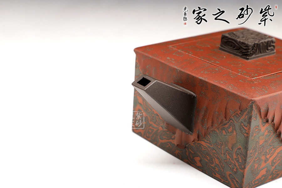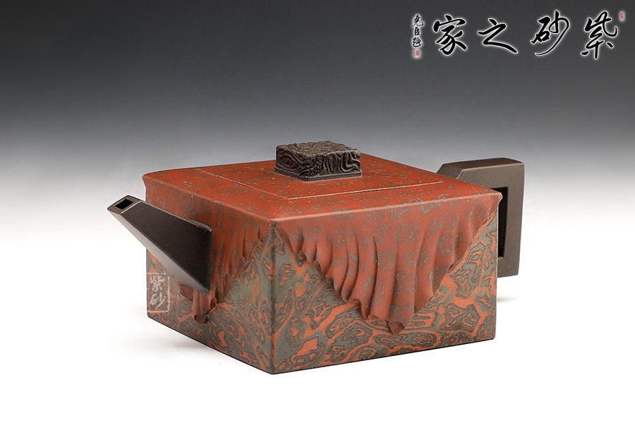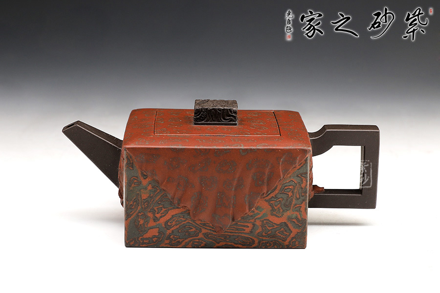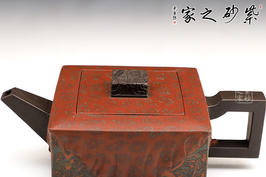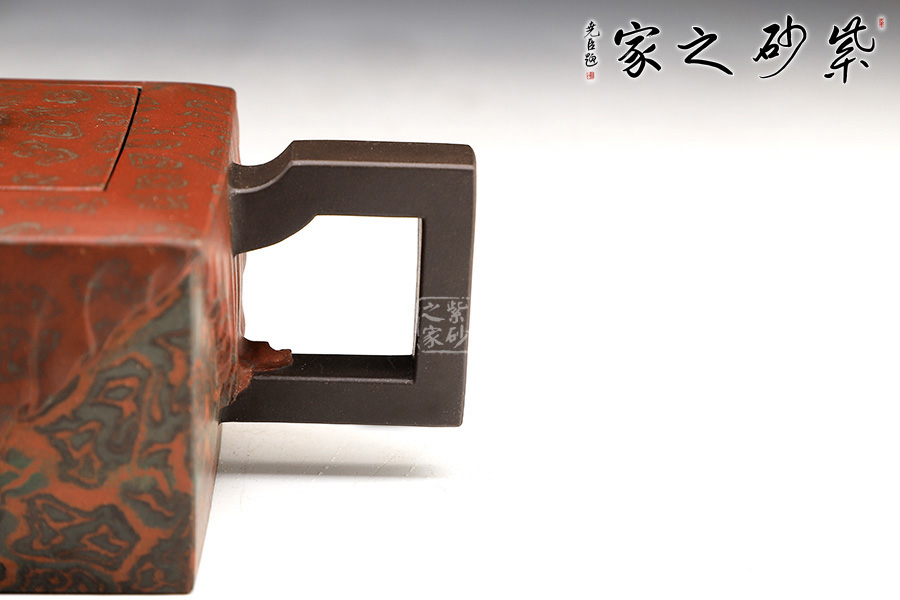 此壺方形線條清晰明朗,做工細(xì)膩,對稱工整。壺體塊面挺括,作為一把方器,此壺點、線、面清晰明確,嵌蓋與壺口吻合緊密,工藝精細(xì)自不必多說。壺身紋理細(xì)膩自然,孔家絞泥技法名不虛傳,美觀典雅,大氣恢弘。褶皺自然,線條的力蘊(yùn)更是到位,精品薦藏!