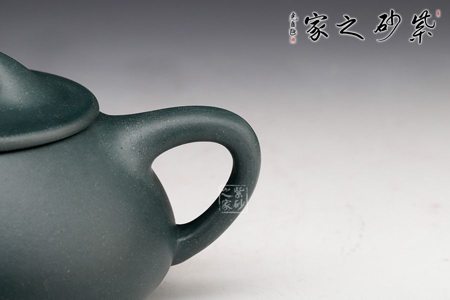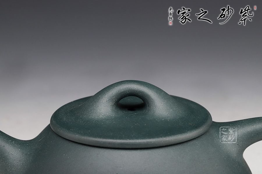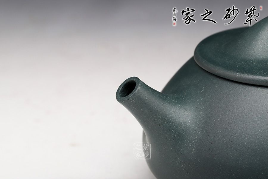 這款民國綠泥的滿瓢壺,沉穩(wěn)內(nèi)斂,水色溫潤,泥質(zhì)細(xì)膩入手生溫。橋鈕搭接在平蓋之上,直流嘴,三角把拐角處略微圓潤;壺身金字塔狀較為挺立,乳足圓潤,略見憨態(tài),透露幾分柔美,文人氣息頗濃。