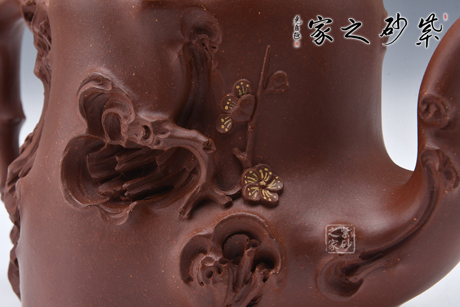 壺身梅樁造型,經(jīng)典耐看,壺身傲雪梅花裝飾,有渾然天成之美,養(yǎng)成后雍容華貴,色澤豐富。