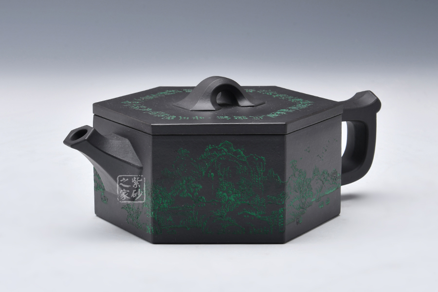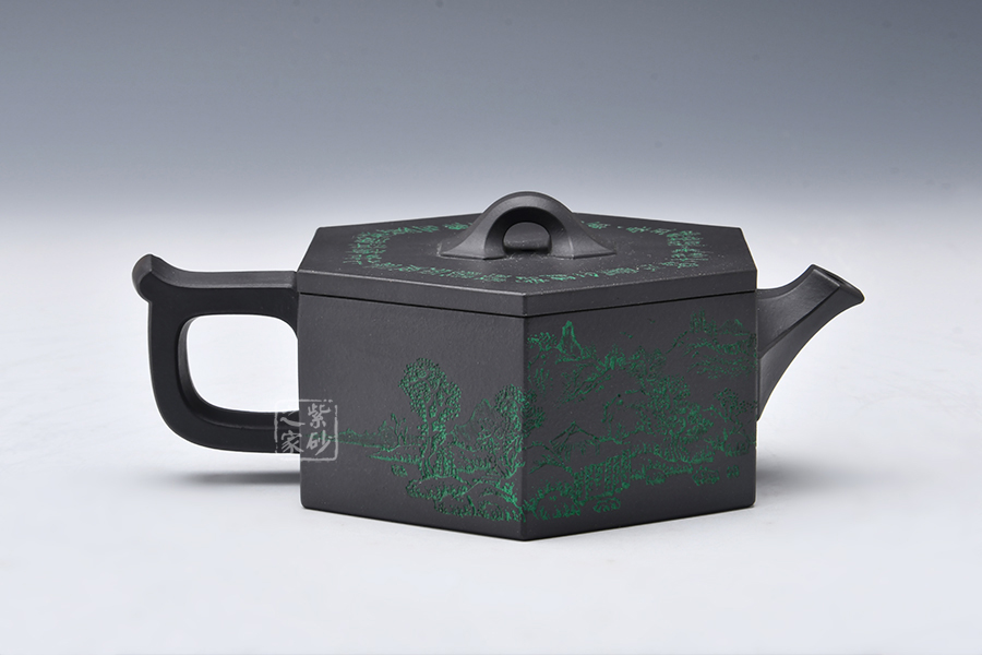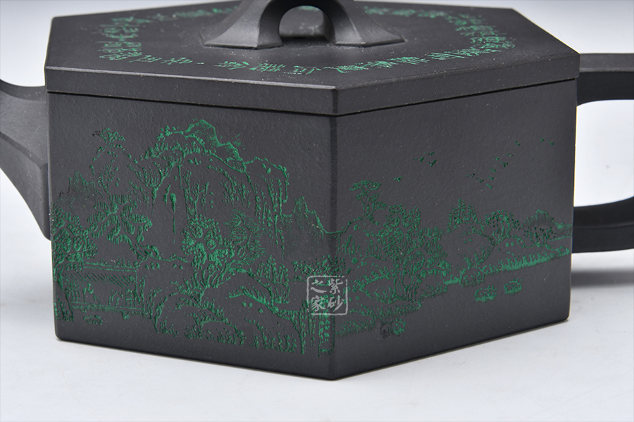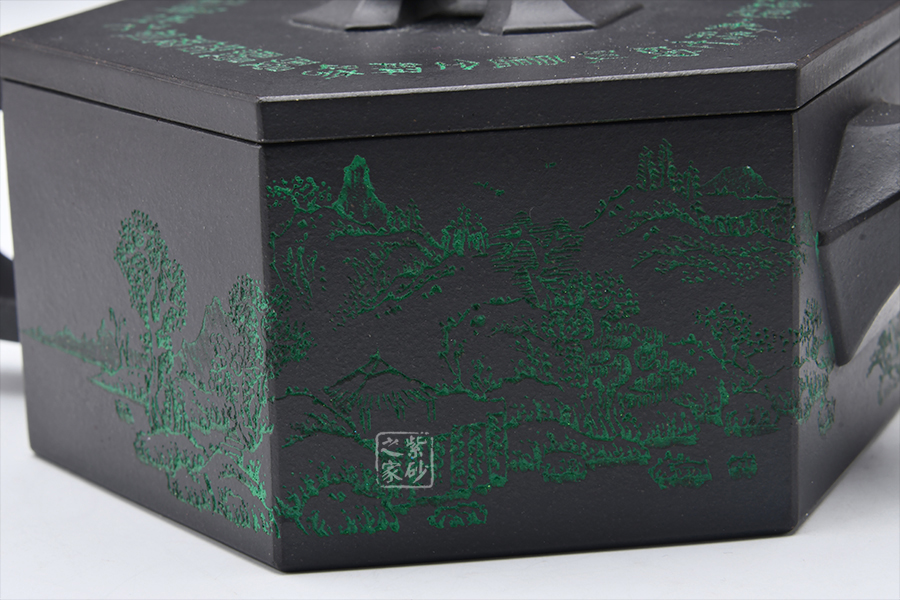 整壺做工精細(xì)古雅,此款六方古井于傳統(tǒng)器型之上加以改良制作,有方器的挺括剛勁。壺身被六線條分成六面,直線線條轉(zhuǎn)折處理細(xì)膩,鈕、流、把皆以方器展現(xiàn),與壺身相呼應(yīng),整體協(xié)調(diào)有致,真正做到了線條流暢,輪廓分明,平穩(wěn)莊重的境界,壺蓋有別于整體以圓形展示,不但不顯得突兀,反而更加古樸內(nèi)斂。壺身刻繪層巒起伏的山脈,高低有致,精美大氣,喜歡的壺友不要錯(cuò)過!