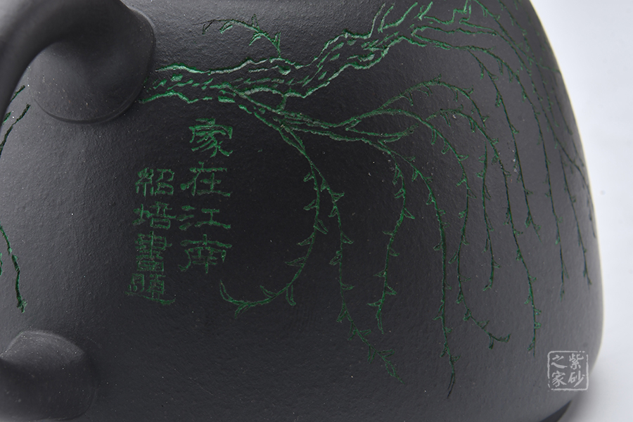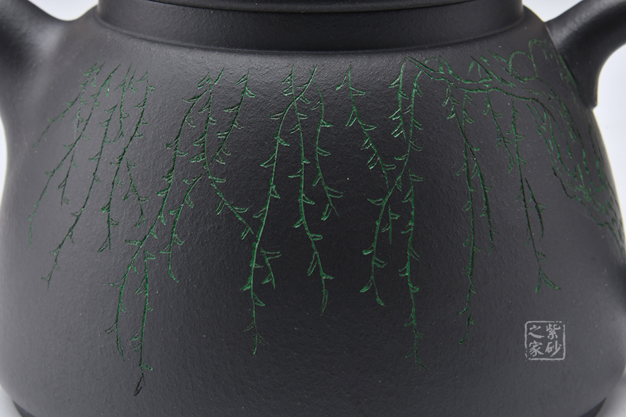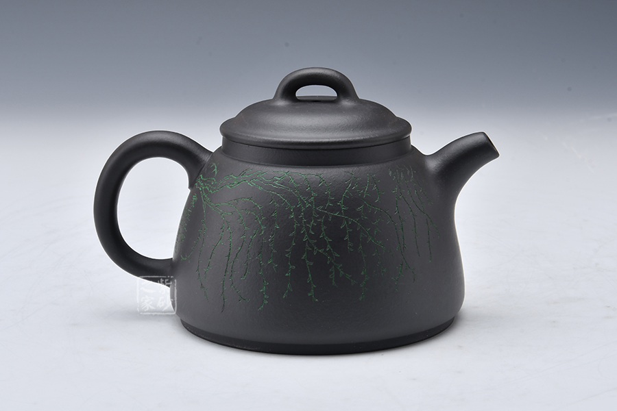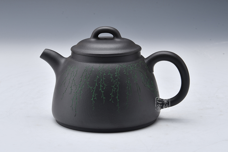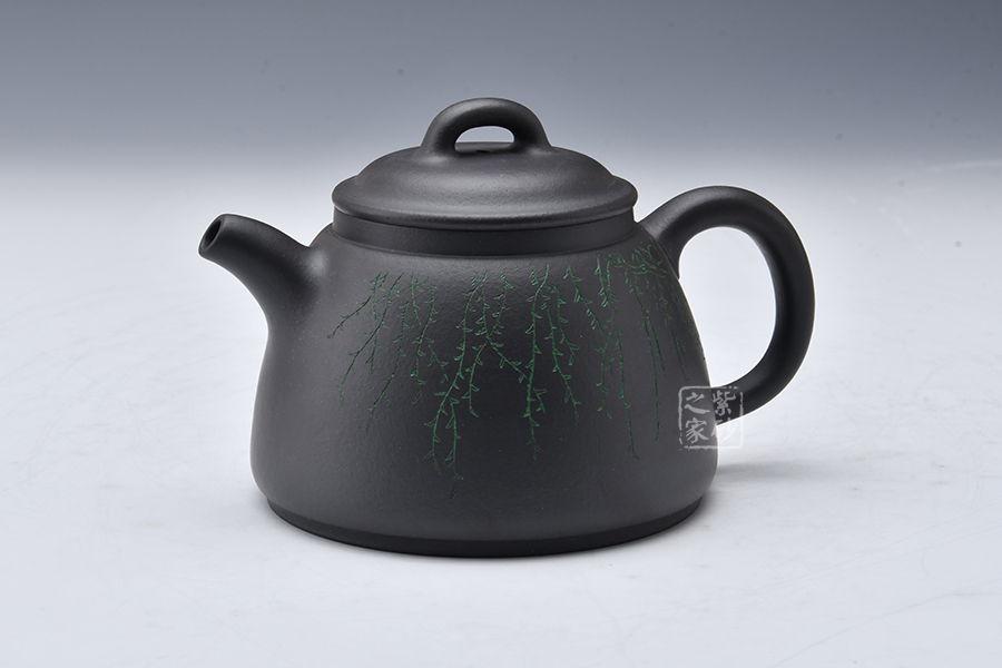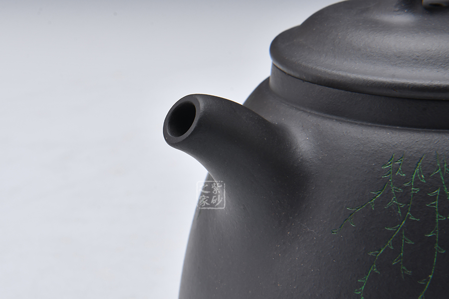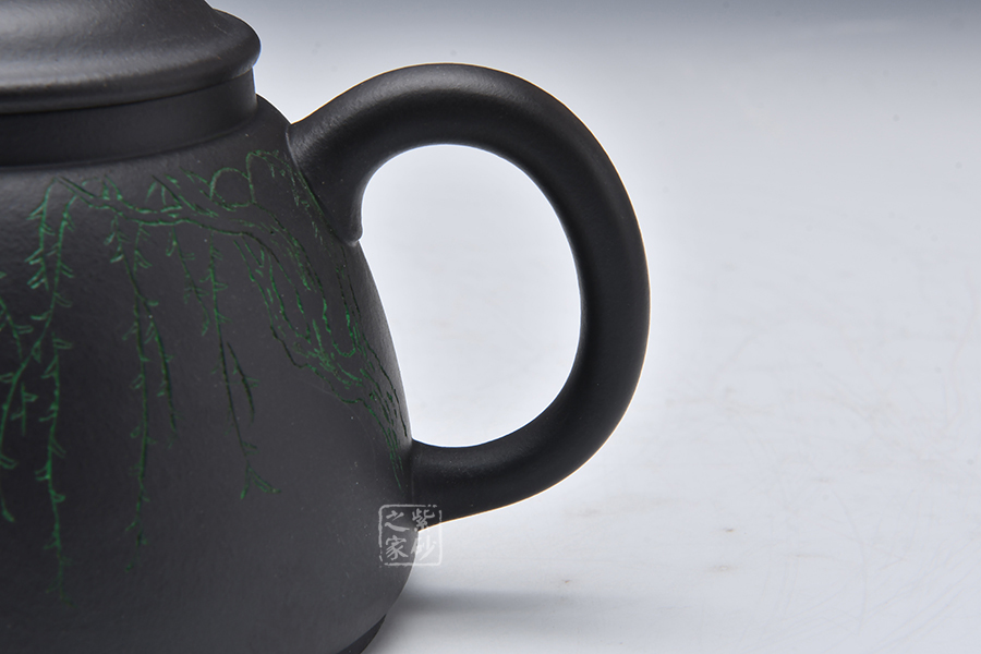 精選稀有泥料黑砂料制成,稀有珍貴。整壺端莊大氣,一彎嘴出水爽利,耳把拿捏舒適,壓蓋設(shè)計(jì)嚴(yán)絲合縫,拱形壺鈕,挺拔壺身。壺腹刻繪柳枝,飄逸自然,十分美觀,喜歡的壺友千萬(wàn)不要錯(cuò)過(guò)!