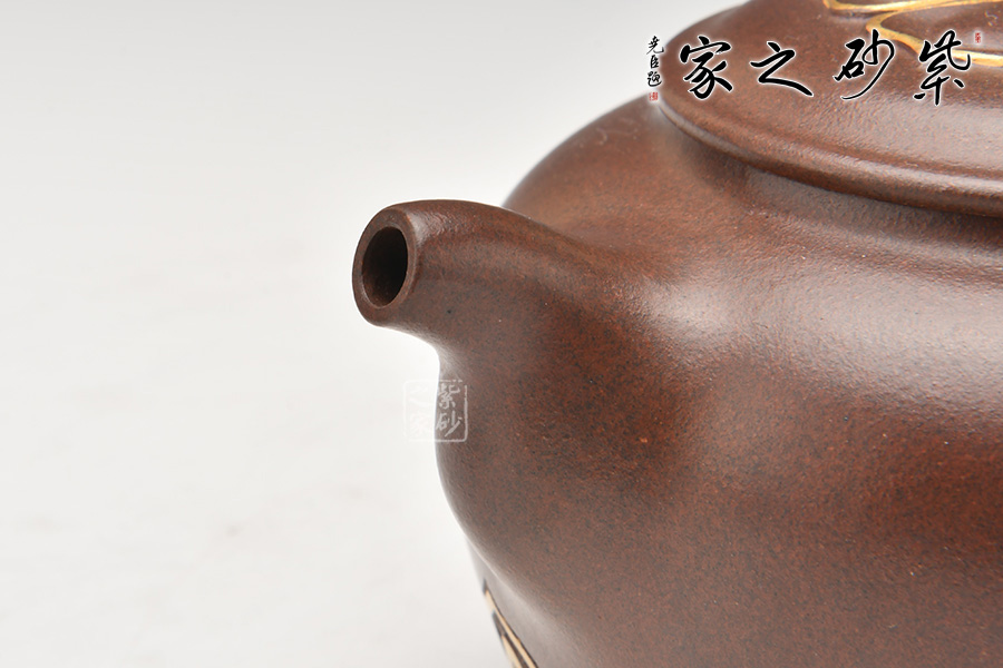 觀賞此壺,讓人頓起無限遐想,古樸雋永、氣勢磅礴、意蘊(yùn)悠長,一片祥瑞之氣籠罩,可謂清新悅目;壺的整體造型,自傳統(tǒng)壺型中汲取元素,以傳統(tǒng)造型為基準(zhǔn),融入現(xiàn)代的設(shè)計(jì)理念,似仿古而非仿古,其色澤醇厚但不俗媚,執(zhí)掌中把玩,手感舒爽。