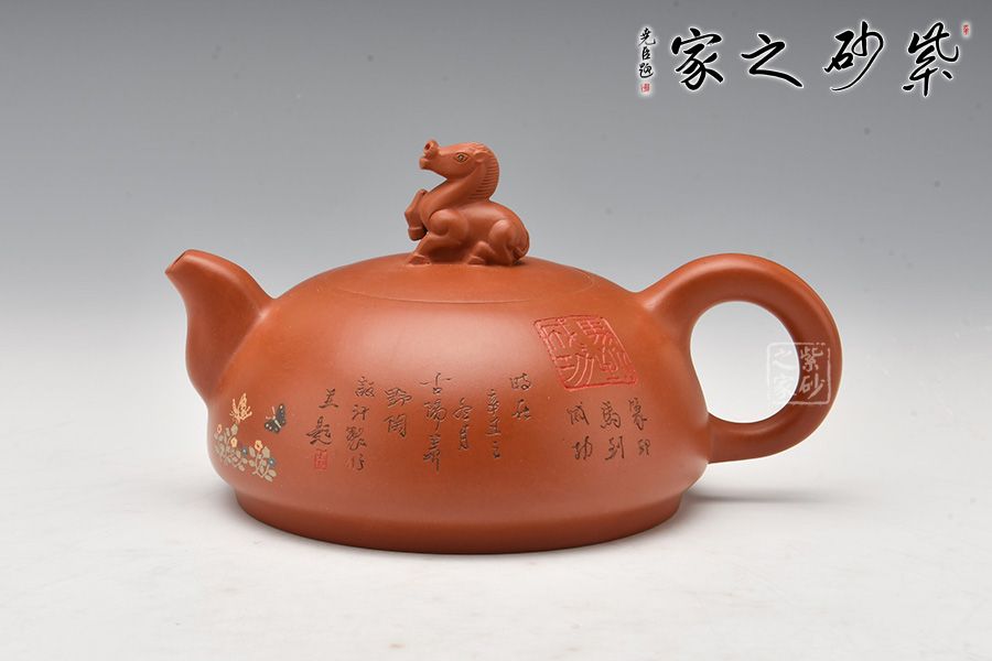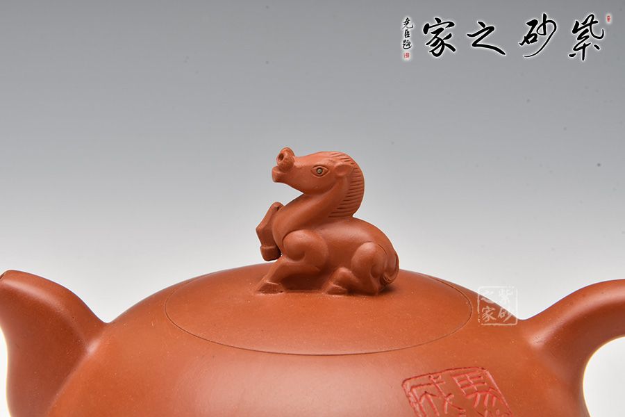 亮點(diǎn)在于此壺以“馬”作鈕,奔馬飛躍,四蹄翻騰,長(zhǎng)鬃飛揚(yáng),壯美的身姿雕塑得栩栩如生,可謂構(gòu)思其巧,自然大氣。