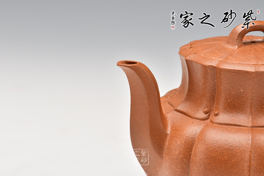 此壺為名泥所制作,色澤富貴嬌嫩,光澤明朗。通體作葵八瓣式,蓋身渾然一體,上下對(duì)稱,線條明晰工整,轉(zhuǎn)折合度,筋紋流暢,脈絡(luò)清新,制作精細(xì)規(guī)整,整體古樸風(fēng)雅,端莊沉穩(wěn)。