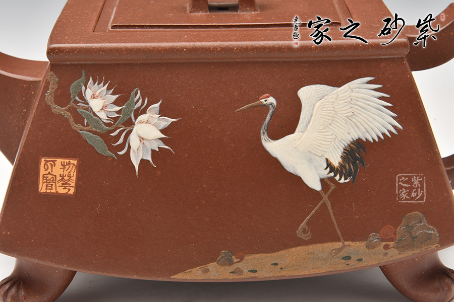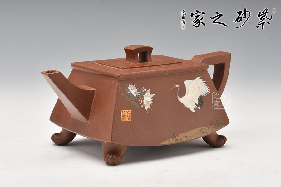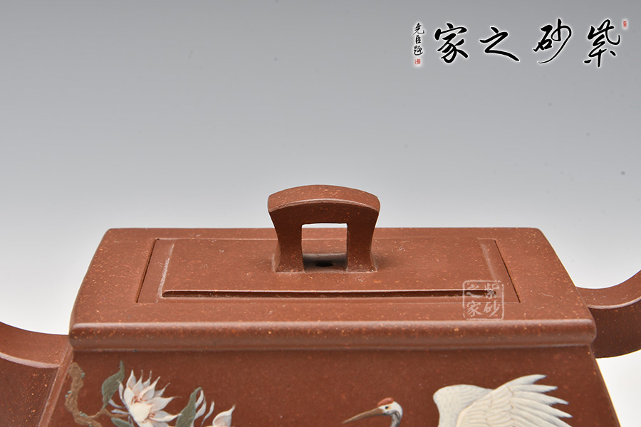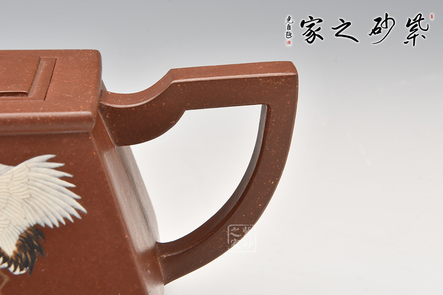 方舟壺由底槽青泥精制而成,老味內(nèi)斂的色澤配上方正的壺型,給人一種經(jīng)歷世間的蒼涼,余留出一份沉穩(wěn)與古樸。嵌蓋的設(shè)計(jì)把壺蓋藏于壺身,壺把壺嘴與壺型契合。壺身的畫(huà)和主題相融合,做工精美絕倫,寓意著平步青云,功成名就。