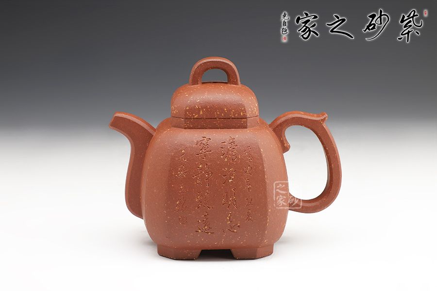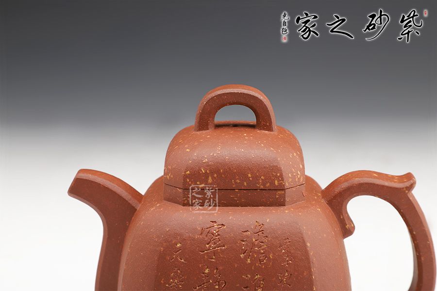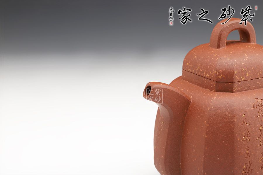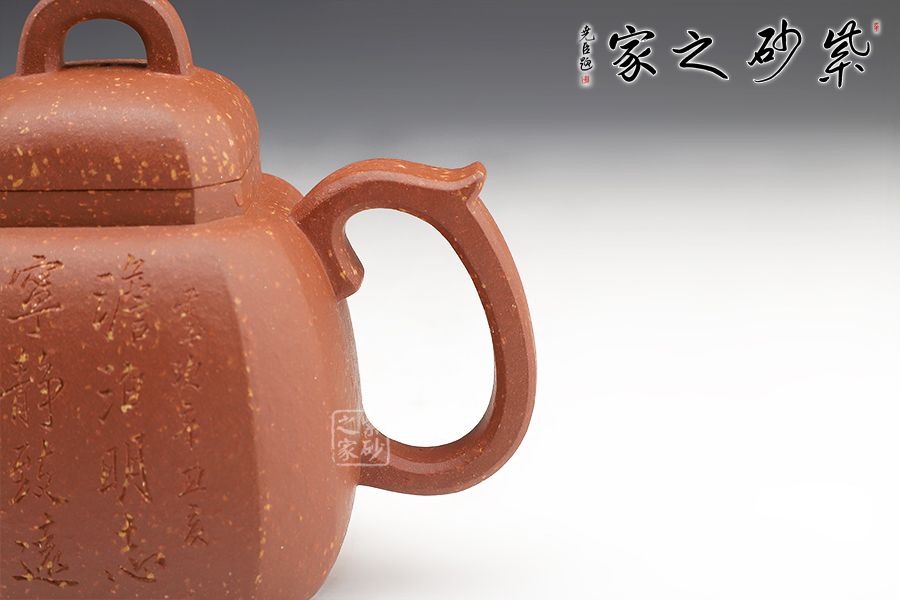 此壺沉穩(wěn)大氣,由八面拼接而成。八,財(cái)富、好運(yùn)之意,寓意財(cái)運(yùn)八方,吉祥興旺。壺身飽滿,圓潤(rùn)大氣。耳形壺把和流暢的流嘴,彰顯沉穩(wěn)氣度和厚重的殷實(shí)感。壺蓋挺括向上隆起,寓意興旺富足。