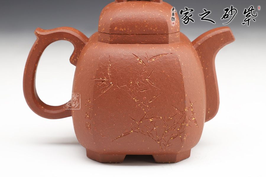 泥性:原礦因含緞泥、紅泥、紫泥等諸多共生礦,陶之后,于深沉之“橙紅色”底上,滿佈五彩斑斕的粗細(xì)、深淺之紅、黃星斑點(diǎn)。