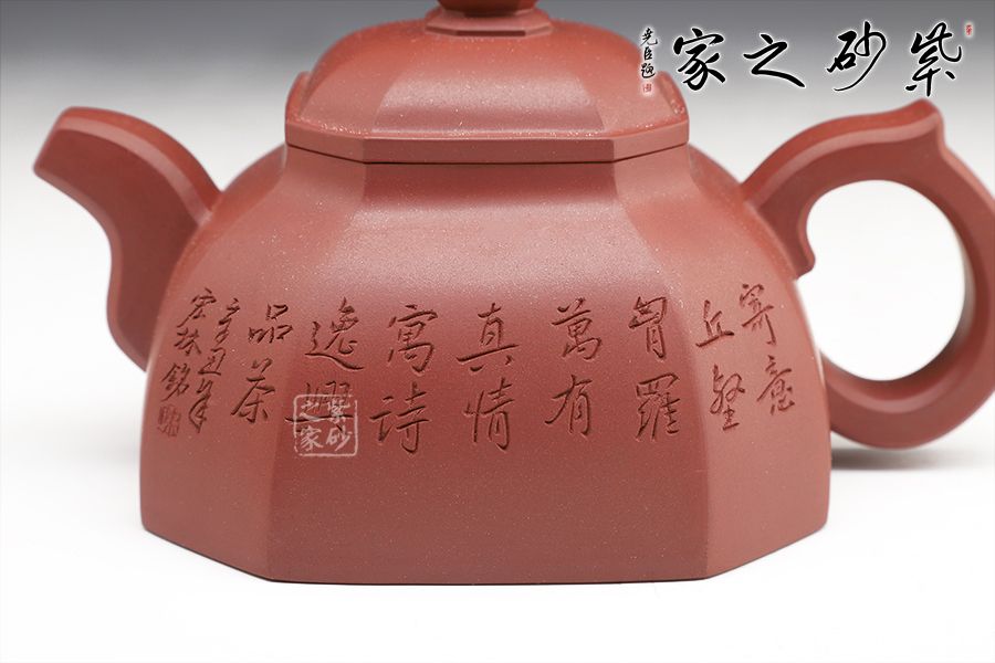 光貨離不開裝飾。俗話說“壺隨字貴,字隨壺傳”:光壺不刻字,就是一把光壺;壺上面刻了大師、名人的字,一把壺的含金量就高了,收藏價值就更高,升值潛力就更大。王福君與中國工藝美術(shù)大師譚泉海合作最多,其次是徐安碧、鮑志強、毛國強(均為中國工藝美術(shù)大師、中國陶瓷藝術(shù)大師)。