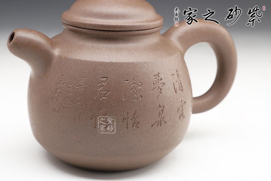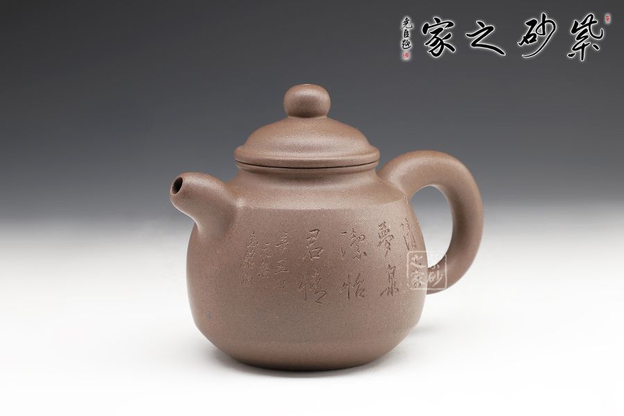 光貨離不開裝飾。俗話說“壺隨字貴,字隨壺傳”:光壺不刻字,就是一把光壺;壺上面刻了大師、名人的字,一把壺的含金量就高了,收藏價值就更高,升值潛力就更大。王福君與中國工藝美術(shù)大師譚泉海合作最多,其次是徐安碧、鮑志強(qiáng)、毛國強(qiáng)(均為中國工藝美術(shù)大師、中國陶瓷藝術(shù)大師)。