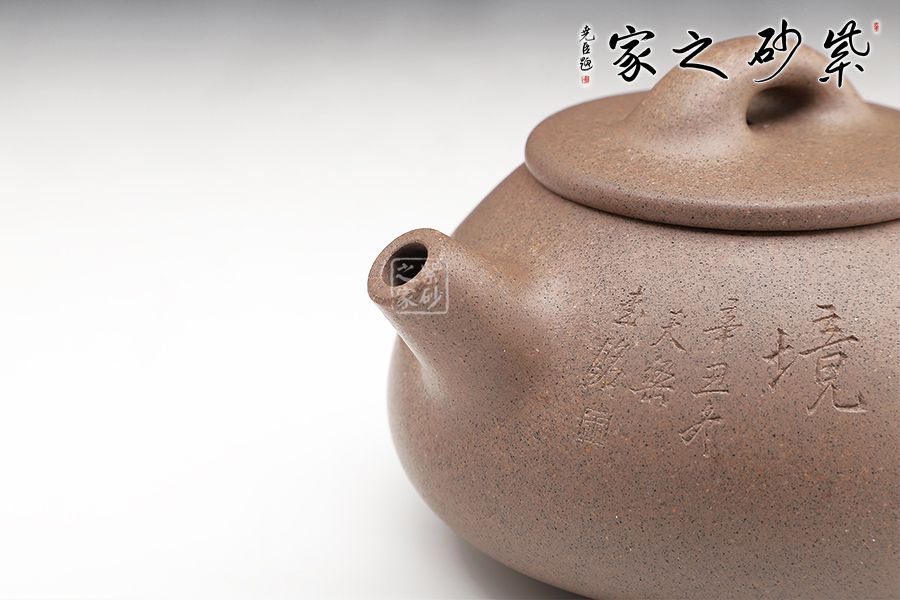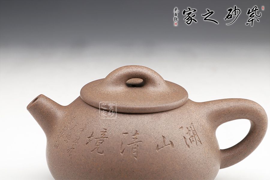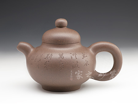 光貨離不開裝飾。俗話說“壺隨字貴,字隨壺傳”:光壺不刻字,就是一把光壺;壺上面刻了大師、名人的字,一把壺的含金量就高了,收藏價值就更高,升值潛力就更大。王福君與中國工藝美術(shù)大師譚泉海合作最多,其次是徐安碧、鮑志強(qiáng)、毛國強(qiáng)(均為中國工藝美術(shù)大師、中國陶瓷藝術(shù)大師)。
