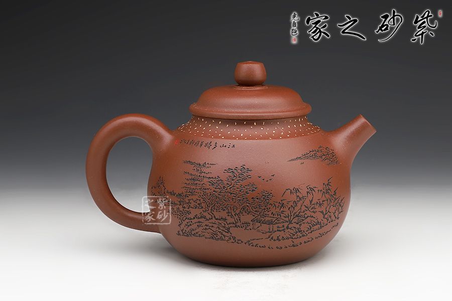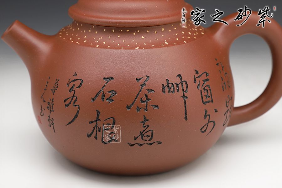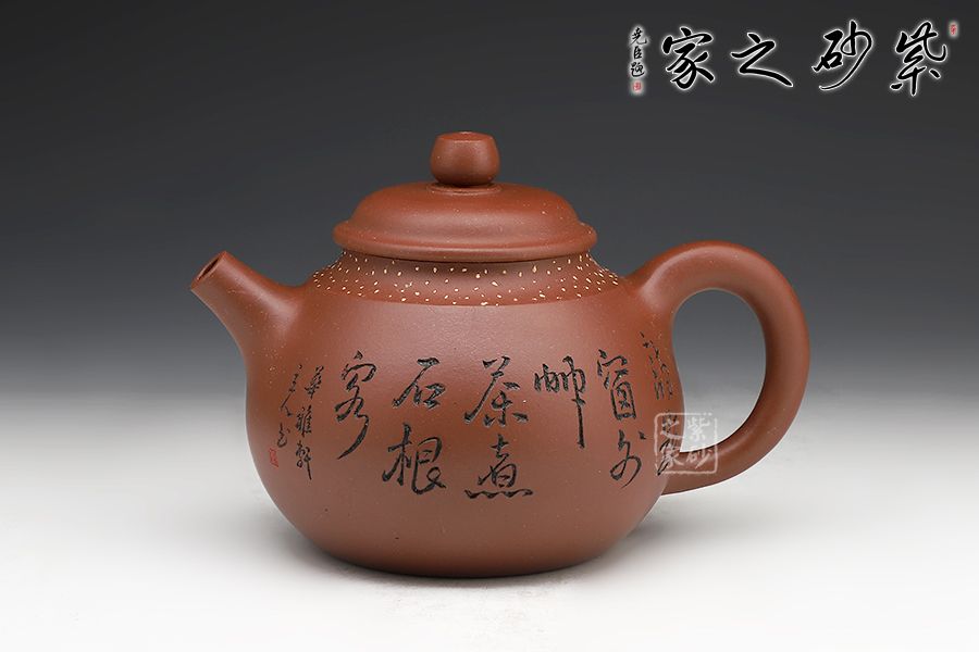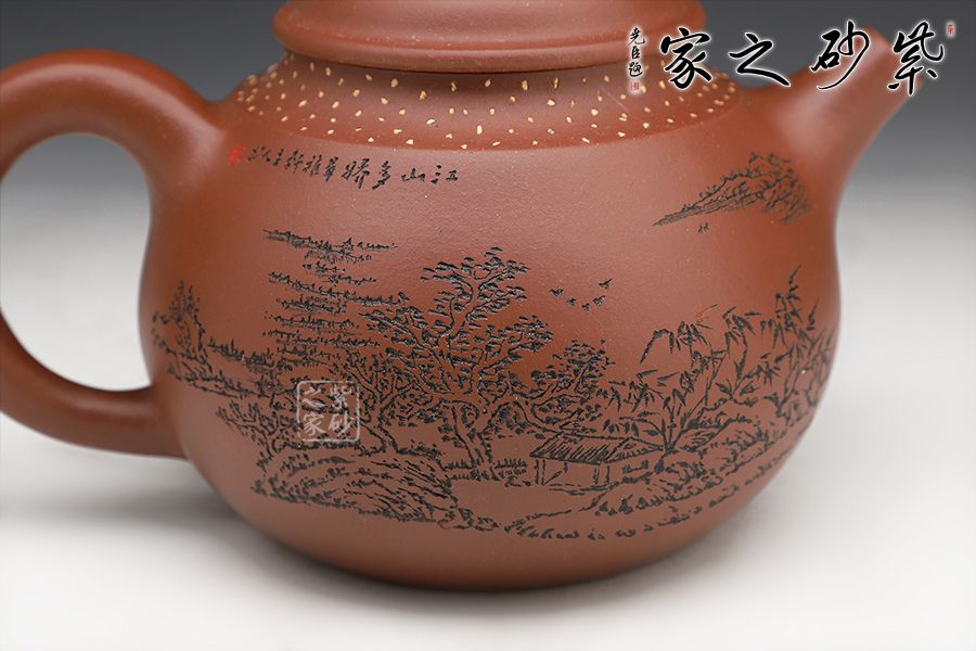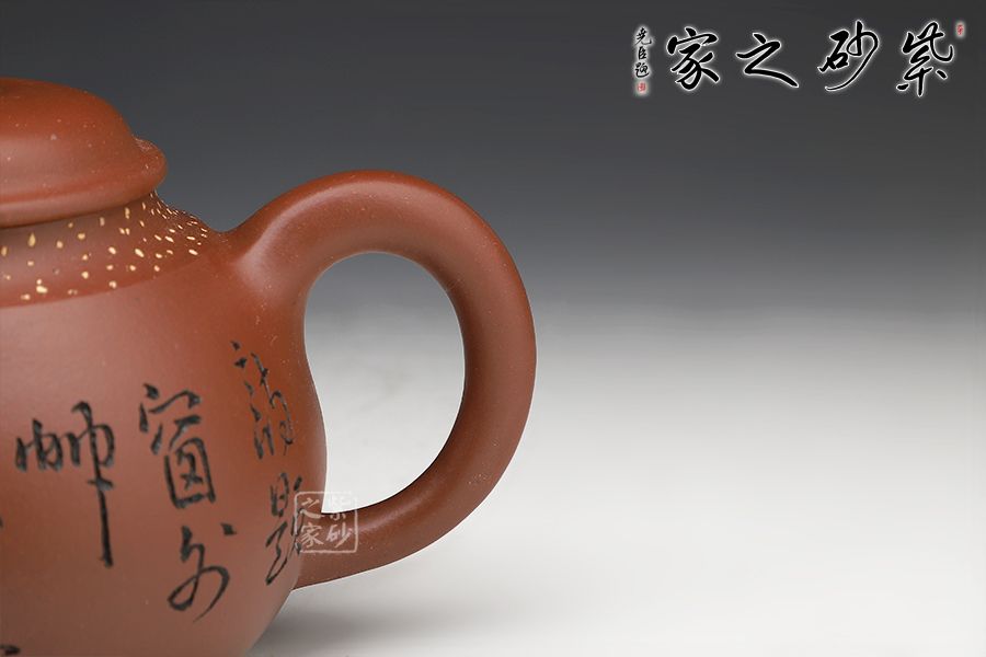 鼓韻壺就是再鼓的形狀上創(chuàng)新而來,趣味悠長。壺身上圓而下工,非常平滑柔和。壺嘴融于壺身,暗接設計,直嘴出水,非常自然。壺把為大弧度耳形,更顯高雅。壺蓋平滑如同一塊玉盤,盤上壺鈕如同一顆玉珠。底槽清泥料結合琢砂裝飾,外觀色彩對比鮮明亮眼,華麗動人。