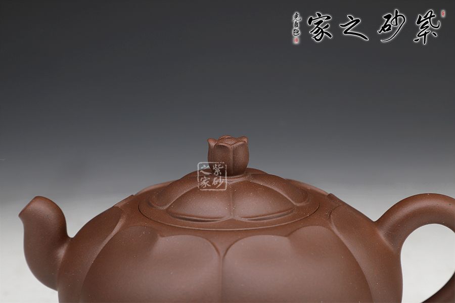 此壺造型端莊秀雅,荷花裝飾清新美觀,品茗賞玩都是佳選。作品設(shè)計(jì)新穎,樣式獨(dú)特,壺把則是莖把造型,細(xì)長(zhǎng)曼妙。環(huán)繞壺蓋一圈有凹紋裝飾,配合壺鈕上的花苞,就像是一圈蓮子。