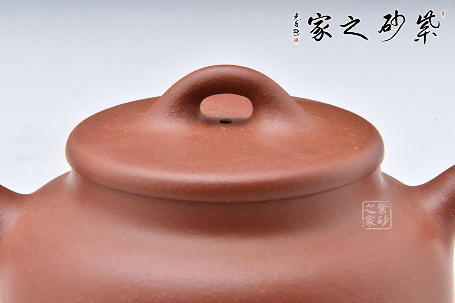 這款德鐘采用了平蓋的設(shè)計,且壺身相對傳統(tǒng)德鐘更矮一些,顯得整個壺型敦厚質(zhì)樸;短短的圓柱形壺鈕,與壺身一致;壺口子母線咬合得很緊致,同時這款壺的壺口比較大,壺肩略微平整,集穩(wěn)重和精巧于一體,造型莊重,儒雅大度。