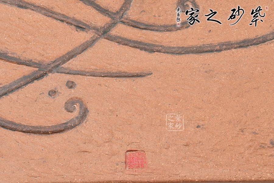 此壺壺身偏扁,別有一番風(fēng)趣。該壺色澤鮮活亮麗,由極精簡的線面,架構(gòu)成西施乳形,流線豐滿光潤,身蓋相連呈截蓋,嘴短微翹可愛,把圈向上傾斜,整體有新穎的造型加上獨(dú)特的神韻,精美絕倫的做工,值得把玩收藏。