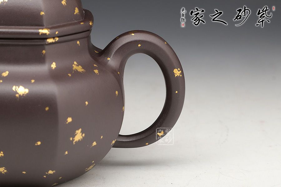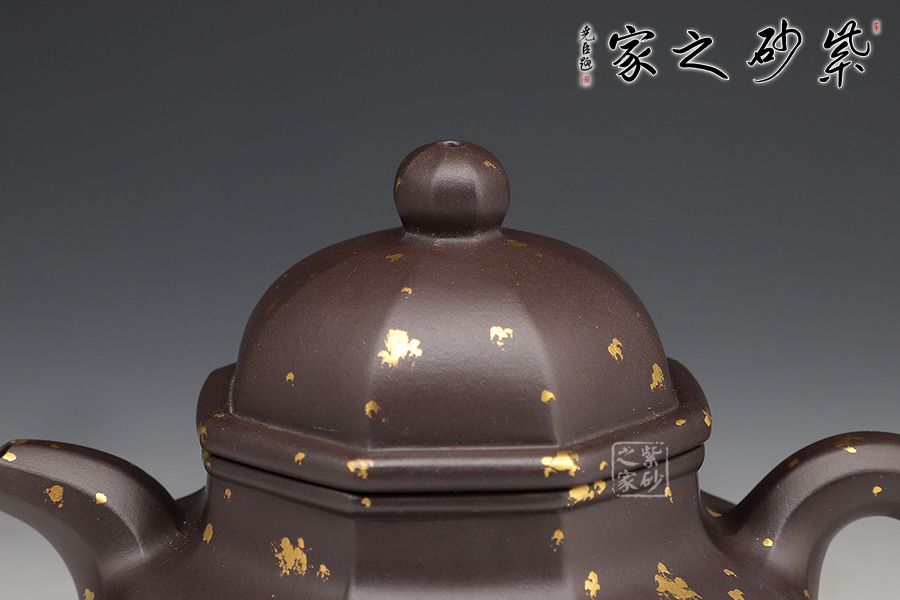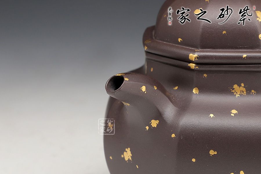 整個壺以六方為造型,上下收斂中間舒展,在簡單之中求變化,上下連通一氣,可謂構(gòu)思巧妙。壺嘴為六方彎流,出水爽利,暗接手法與壺身相連,壺把與壺身相對應亦采用棱形以暗接手法連接,整個壺型在原有基礎(chǔ)上增加新的創(chuàng)作理念。