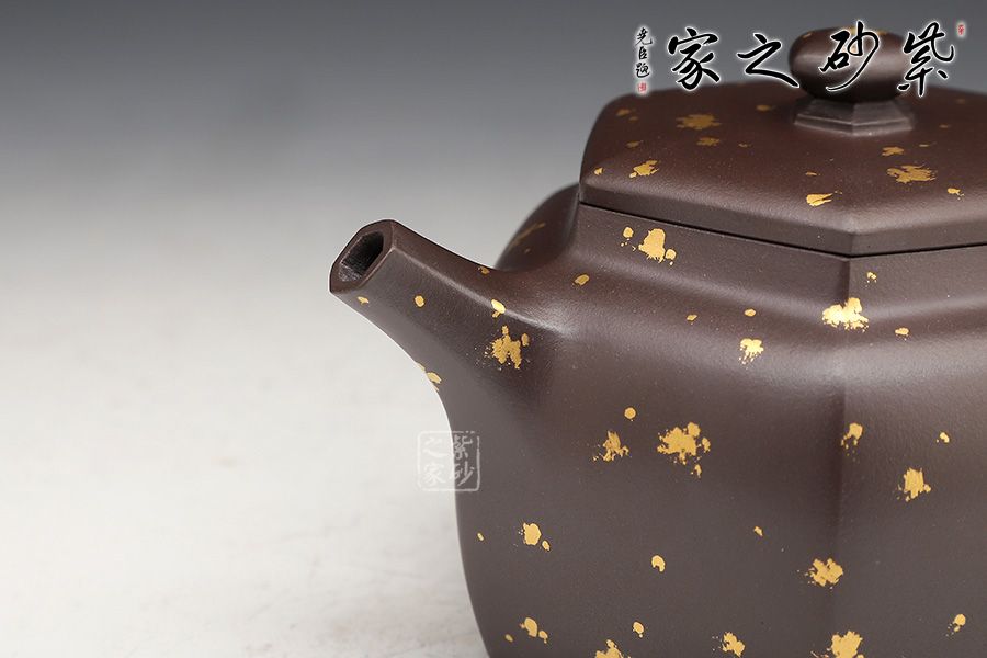 身筒與壺蓋皆為混六方造型,線條流暢且剛直,彎曲有度,壺蓋無論往哪個方向轉(zhuǎn)度皆可與壺身相對應(yīng),同為混六方的嘴和把與壺身搭配自然,明接相連。純紫老泥,是紫砂泥中的上佳泥料,屬紫泥系列,吸水性佳,透氣性驚人。