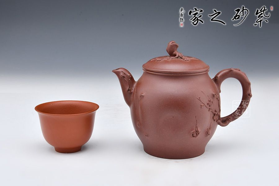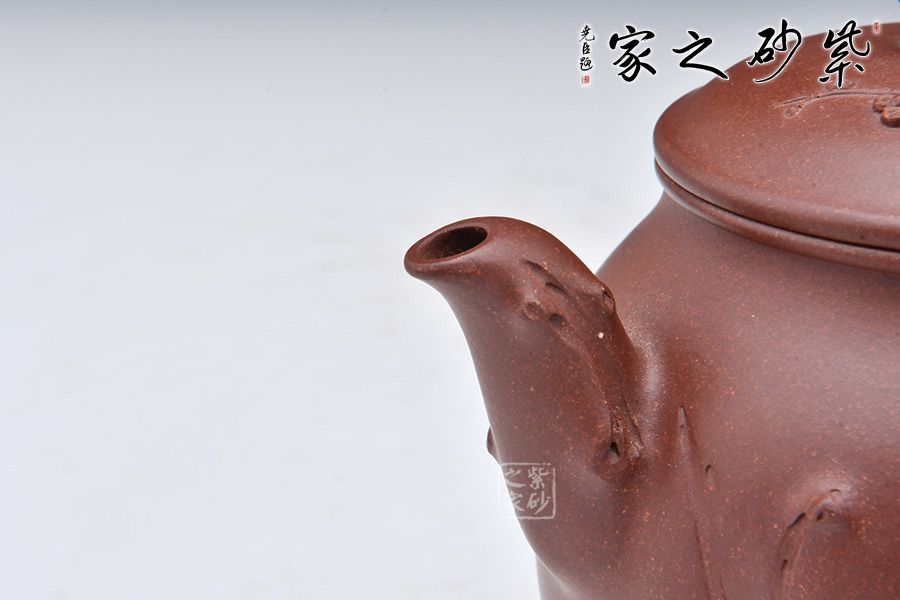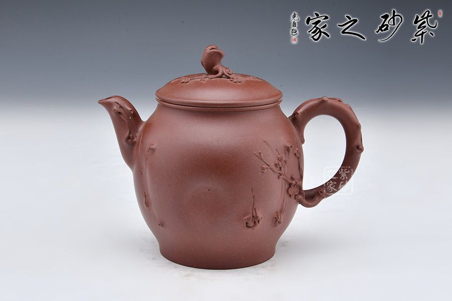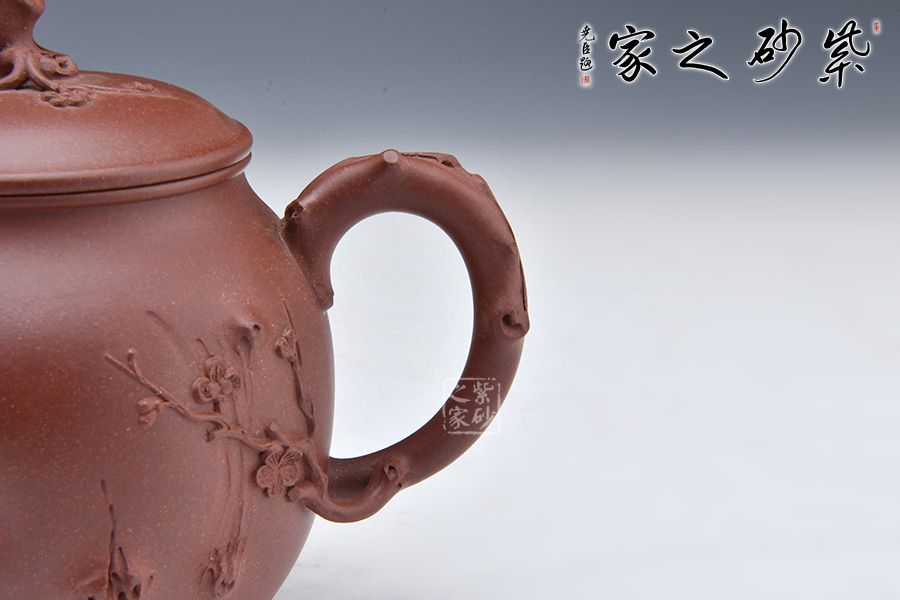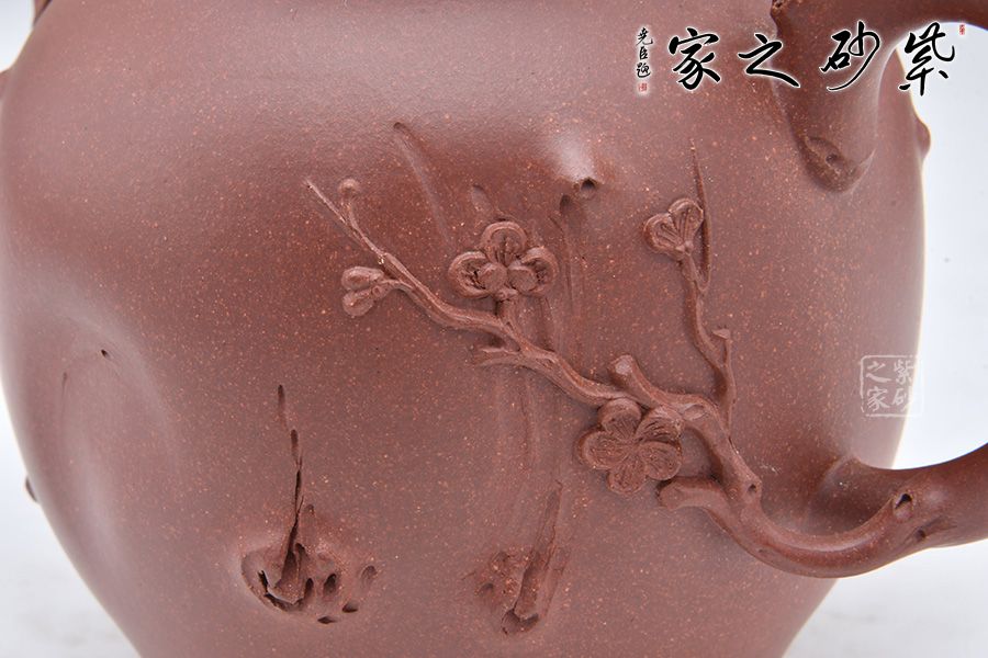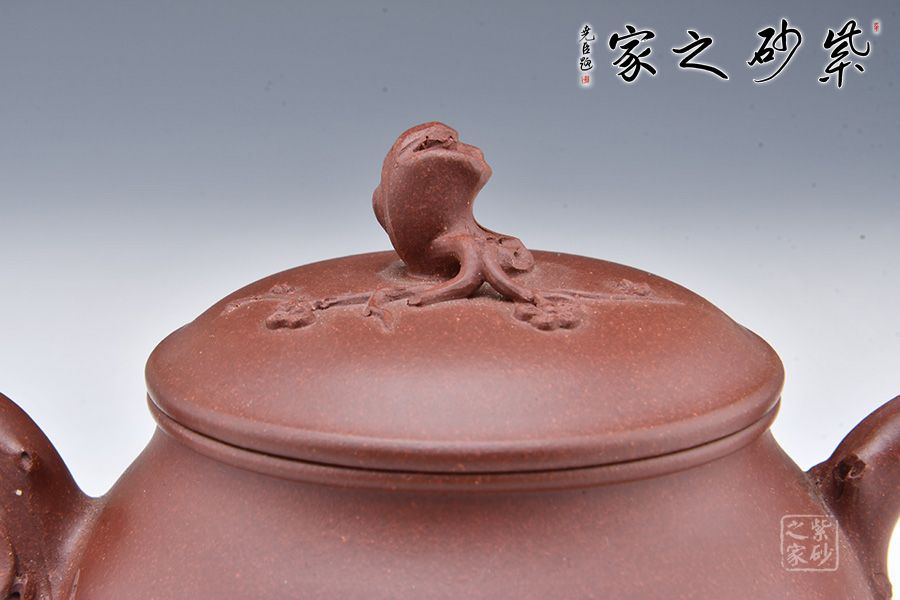 梅樁,是一款經(jīng)典的紫砂壺器型,以梅花燦爛綻放表現(xiàn)報春的主題,從壺身造型到創(chuàng)作原意都洋溢著無比的朝氣,讓人感到了春天來到的勃勃生機(jī)。壺身、流、把、蓋全部是用極富生態(tài)的梅樁、樹皮組成,形態(tài)自然而富含力度。壺上梅花采用貼花技藝手法,暗香動人,充滿了生命的活力。此壺做工精細(xì),實用性觀賞性都很好。