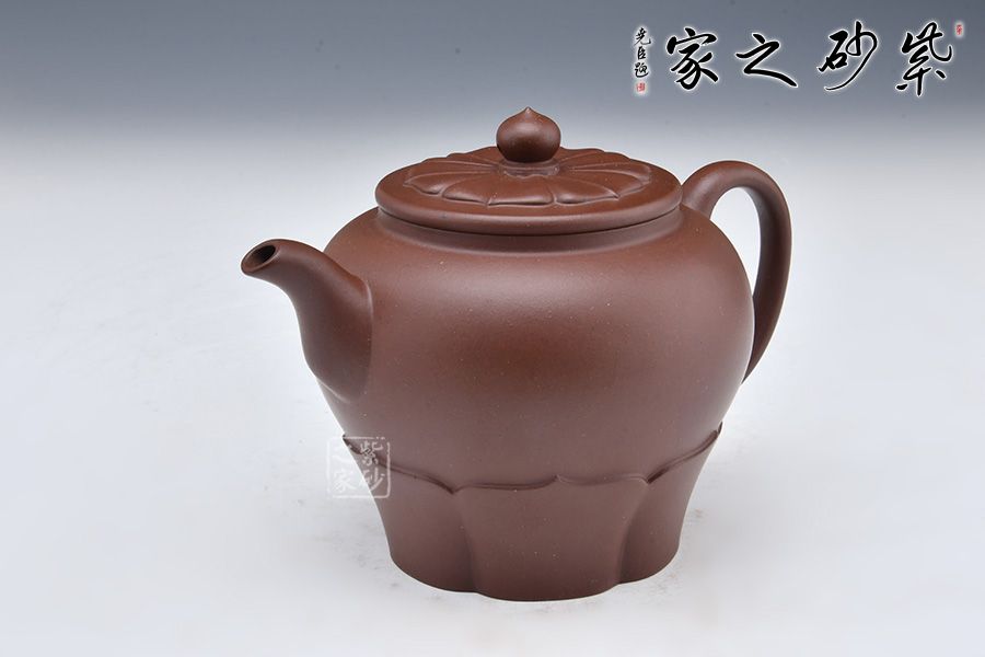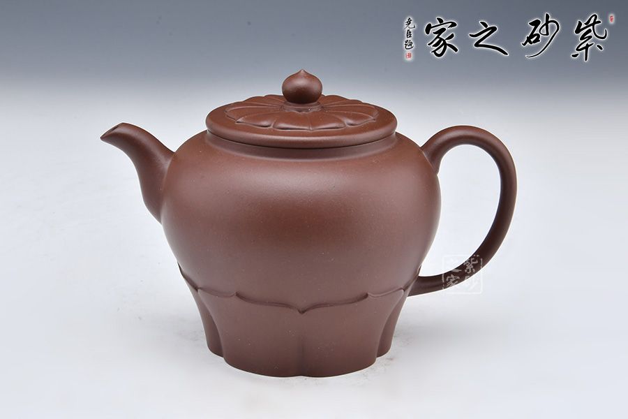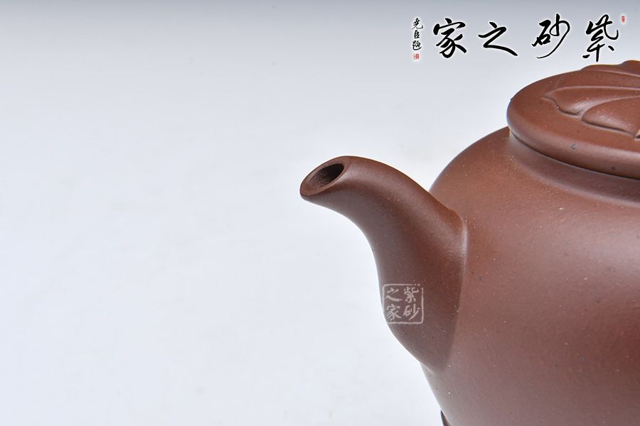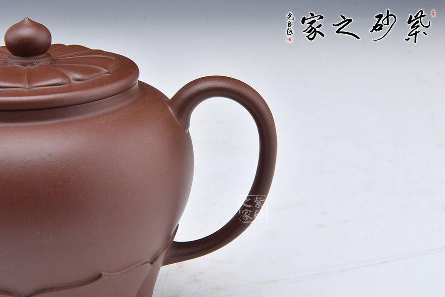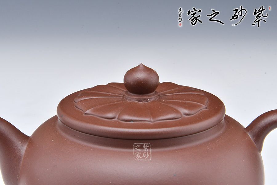 壺身潤澤,通體晶瑩。壺蓋宛若蓮花綻放,形象地刻畫出蓮花的形象,別致精美。壺鈕為一顆蓮子,盡顯妙趣,具有生活氣息。以蓮葉做壺底,更顯穩(wěn)重。整體端莊樸素,線條流暢舒爽,自在蓮花,禪味十足。
