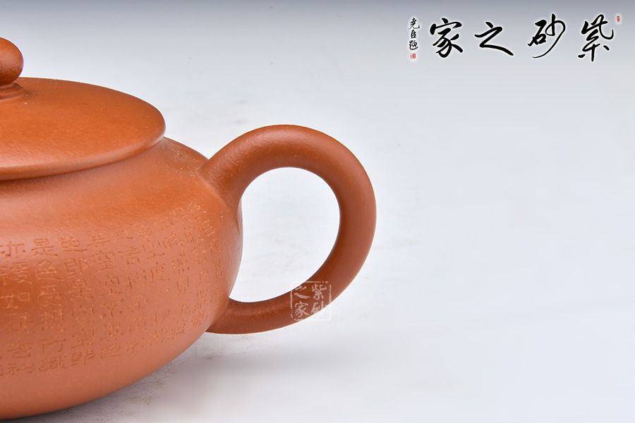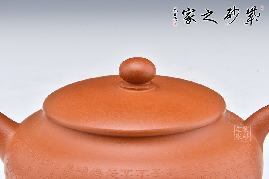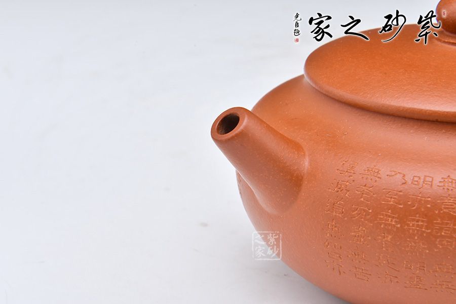 此壺精選原礦朱泥制作,壺身飽滿,豐盈大度。直流壺嘴,出水順暢爽利。壓蓋式,緊密貼合,氣密性良好,圓形壺鈕,小巧可愛。