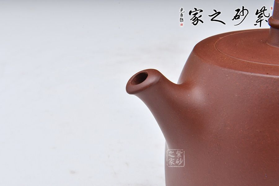 此壺選用原礦底槽清制作,顏色穩(wěn)重大方,容易讓人感受到一種平和的溫和。造型如鐘,壺身造型規(guī)整,線面轉(zhuǎn)換周正舒坦、色調(diào)雅合,技藝嚴(yán)整,風(fēng)格之敦樸幾無(wú)可挑剔,平嵌蓋,與壺融為一體,柱鈕上部置圈線,流直口平,耳把似方,形筒古樸;整體形制優(yōu)美,顏色古雅,其實(shí)用價(jià)值是可想而知的。