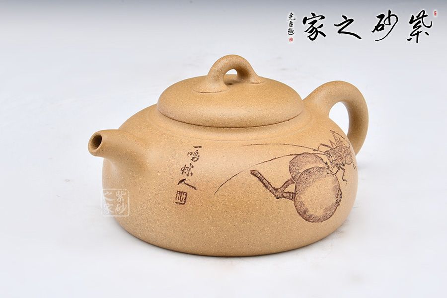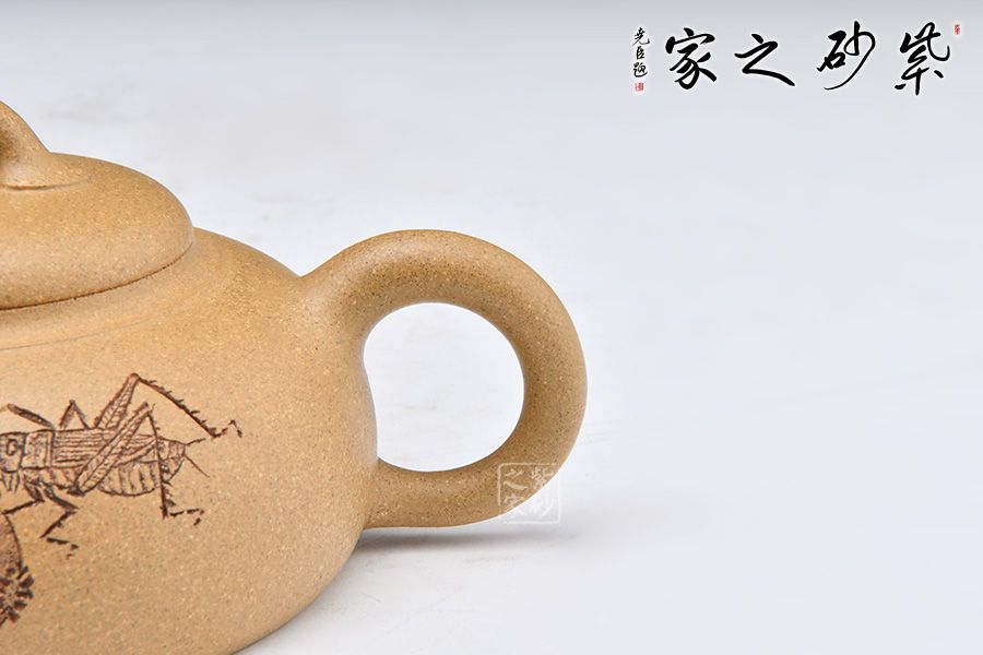 泥性:感甜嫩綿密,質(zhì)堅而溫潤,呈近田黃色調(diào),為江蘇宜興趙莊山系朱泥礦~黃石黃之共生礦,經(jīng)挑揀練製而成,因含鐵量只達6%左右,致陶之后呈“金田黃色”。