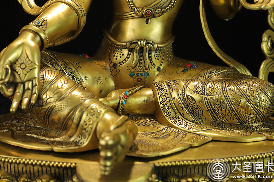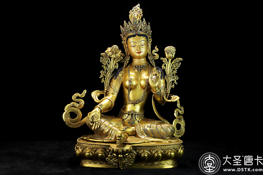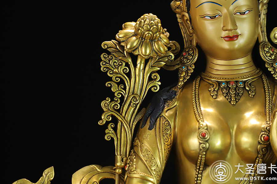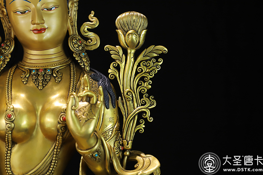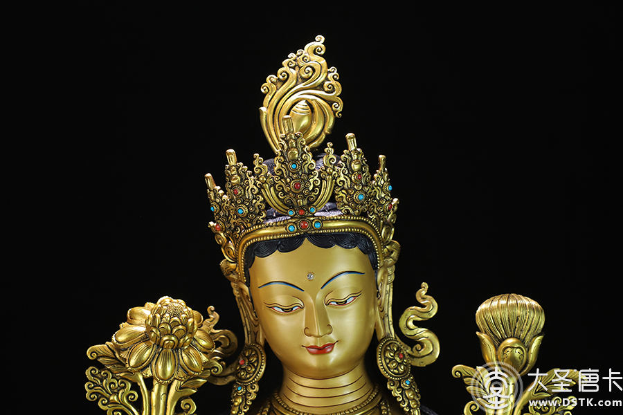 綠度母,藏語叫“卓姜”,是從觀音菩薩的眼淚中化現出來的,所以最慈悲。綠度母為所有度母之主尊,總攝其余二十尊化身之所有功德。因其救度之迅速、摧滅魔業之勇猛,故又稱作“救度速勇母”。