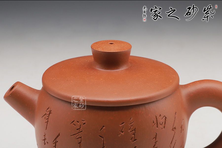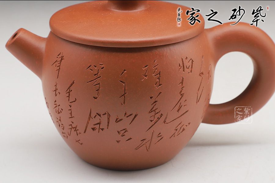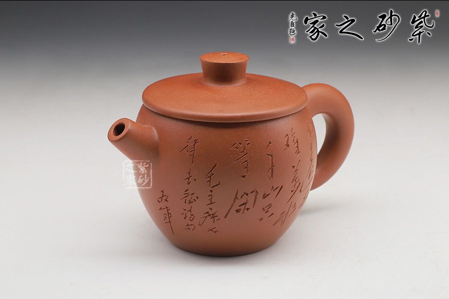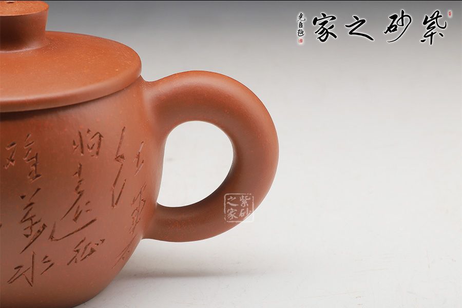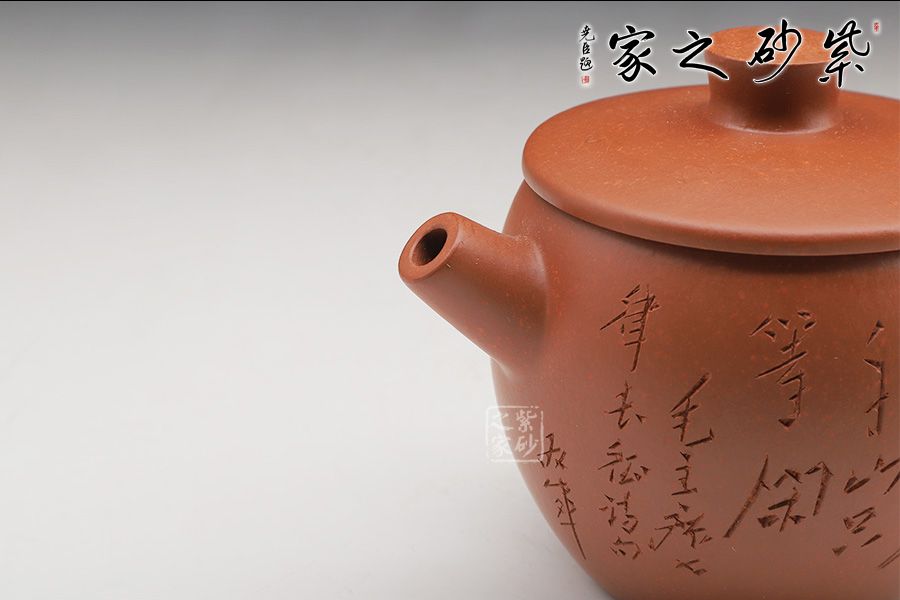 巨輪珠是非常實用的器型,此壺肥嘴肥把肥鈕的道洪風格讓整把壺看起來憨態(tài)可掬,大口蓋非常的好投茶,朱泥的泥料不僅美觀也很實用,易出包漿。壺上的刻繪更加增加了觀賞性。喜歡朱泥的朋友千萬不能錯過許雙軍老師的這款巨輪珠。