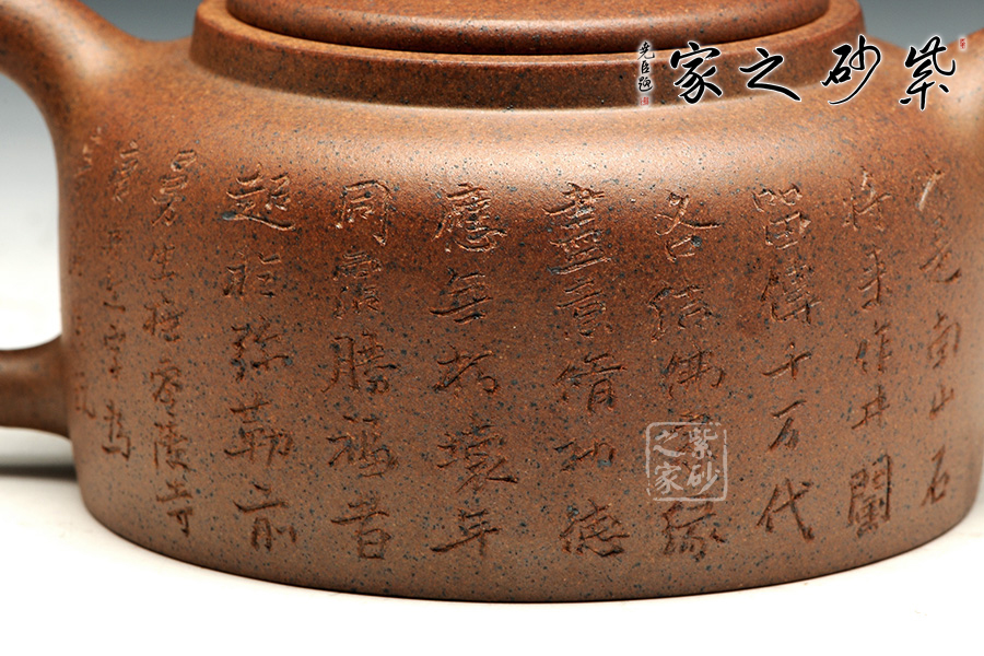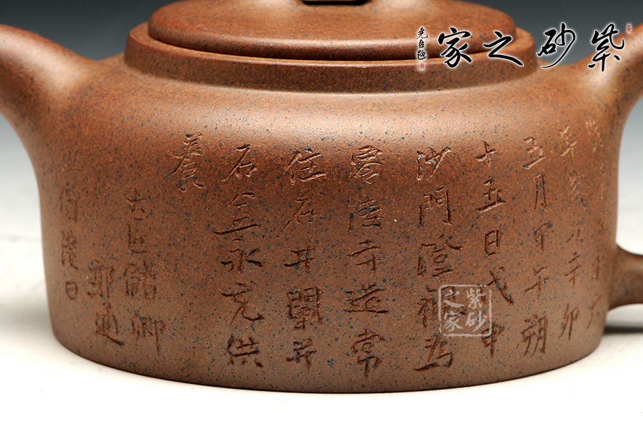 壺身刻繪關于曼生十八式其中仿古井欄的銘文,銘文內(nèi)容“維唐元和六年,歲次辛卯,五月甲午朔,十五日戊申,沙門澄觀為零陵寺造常住井闌并石盆,永充供養(yǎng),大匠儲卿郭通,以偈儧日。此是南山石,將來作井闌,流傳千萬代,名結佛家緣,盡意修功德,應無朽壞年,同勝福者,超于彌勒前,曼生撫零陵寺唐井文字為寄漚清玩。”。