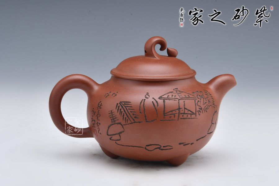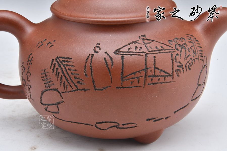 整壺底槽清制作而成,色澤古樸,端莊大氣。此壺是許美勤老師的國工晉級作品,更榮獲專利證書,意義非凡。壺身圓潤有型,一彎嘴出水流暢,耳把拿捏舒適,壓蓋設計,嚴絲合縫,水滴壺鈕十分具有特色,三鼎足挺拔壺身。此外,壺身查元康大師刻繪“野含時雨潤”,強強聯合,升值加倍!