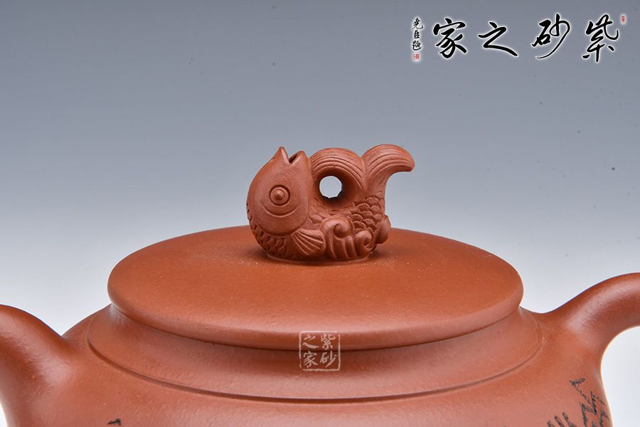 年年有余選用紅皮龍泥料為胎,許美勤老師全手工制作,色澤溫潤(rùn)可人。