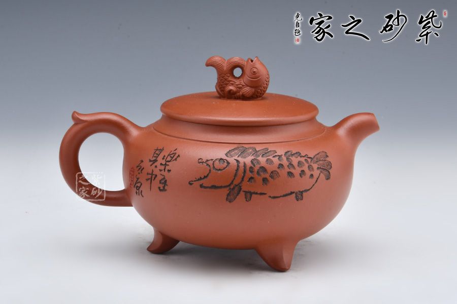 年年有余選用紅皮龍泥料為胎,許美勤老師全手工制作,色澤溫潤可人。