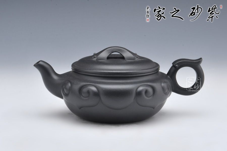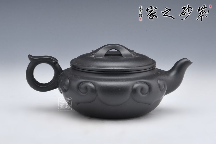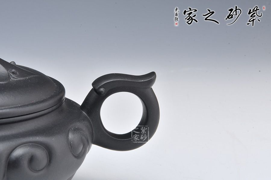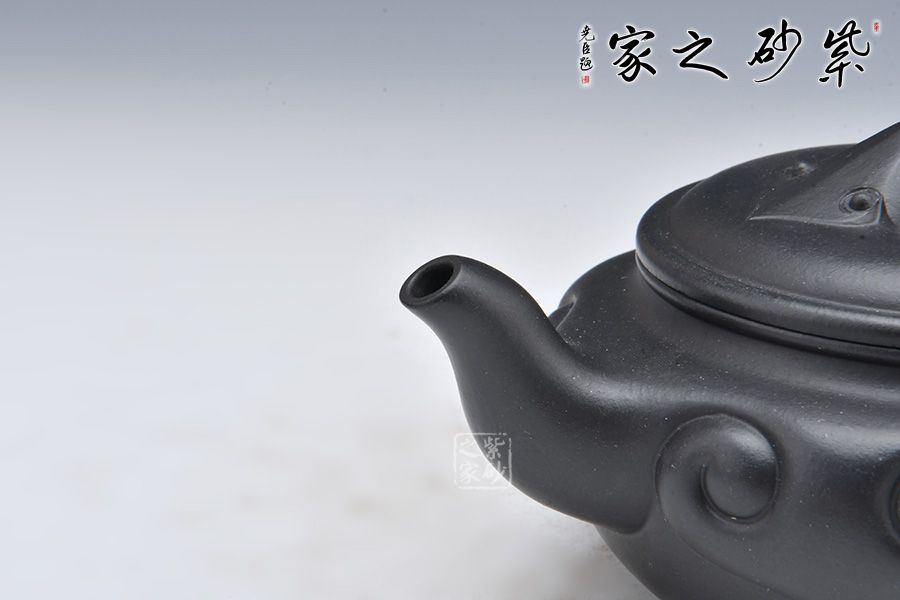 玉龍如意壺,壺身造型融以中國(guó)傳統(tǒng)文化中的龍和如意的形象寓意,獨(dú)具文化魅力。壺身鼓脹有力,利于葉片伸展,茶香濃厚;壺把為龍頭造型,塑的極其精細(xì),更覺威嚴(yán)的氣勢(shì)。二彎流,出水爽利。整壺造型新穎,祥瑞感十足。